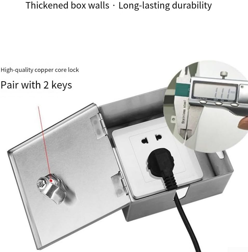 Features:*Waterproof Protection: The splash-proof design of this electric box lock ensures that no water penetrates the socket, providing reliable protection for outdoor electrical connections and enhancing safety during use in various weather conditions. *Good Construction: Made with stainless steel, this electrical housing offers exceptional durability, insure long-lasting performance and resistance against wear and tear, making it good for outdoor installations. *Socket Design: This product is specifically crafted for sockets, enabling safe charging of outdoor electrical appliances while keeping covers secure from environmental elements. *Accidental Touch Prevention: The protective cover features a design that prevents accidental touches, insure safety by safeguarding switches from unintended activation, suitable for both surface-mounted and flush-mounted applications. * for Versatile Application: Designed for versatility, this waterproof electrical housing can accommodate a variety of outdoor electrical setups, making it an essential component for secure power supply in gardens, patios, and other outdoor areas.Specifications:*Product Name:electric box*Material:stainless steel*Size:As shown*Color:SilverPackage Content:1 x electric box