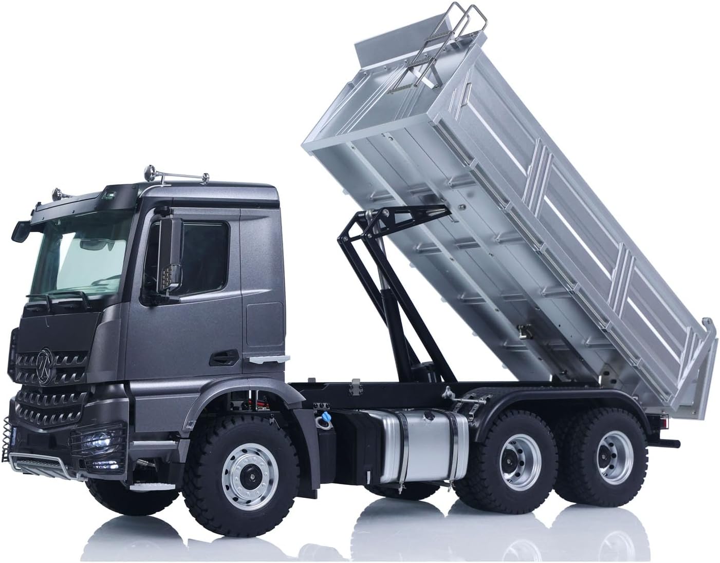 #New 2.4G RC Electric Lifting Dumper 5702 Model 1:14 6×6 Remote Control Tipper Lifting Rod Vehicle Sound Light Motor RTR Car #Specification: Manufacturer: Kabolite Item condition: New,Assembled and Painted Scale: 1/14 Size: 645x208x273mm Material: Plastic, Metal, Rubber ID: KABO-5702-RTR-SGY #The Package Includes: 1/14 6x6 RC Dump Truck Model Motor Servo 3 in 1 Mainboard (Integrated ESC & Light system & Sound system) 2.4G Remote Controller and Receiver 2-speed Transmission Battery Charger #Parameter: Usage Time/Minutes: 40-60 minutes Charging Time/Hours: 3-5 hours Speed Standard/Minute: Less than 40 meters Maximum Load of Dump Bed/Kilograms: Less than 4 kilograms Remote Control Distance/Meters: ≥25 Maximum Dump Bed Lifting Angle/°: 47° Front Approach Angle/°: 23° Rear Departure Angle/°: 31° Maximum Tire Outer Diameter: 85mm