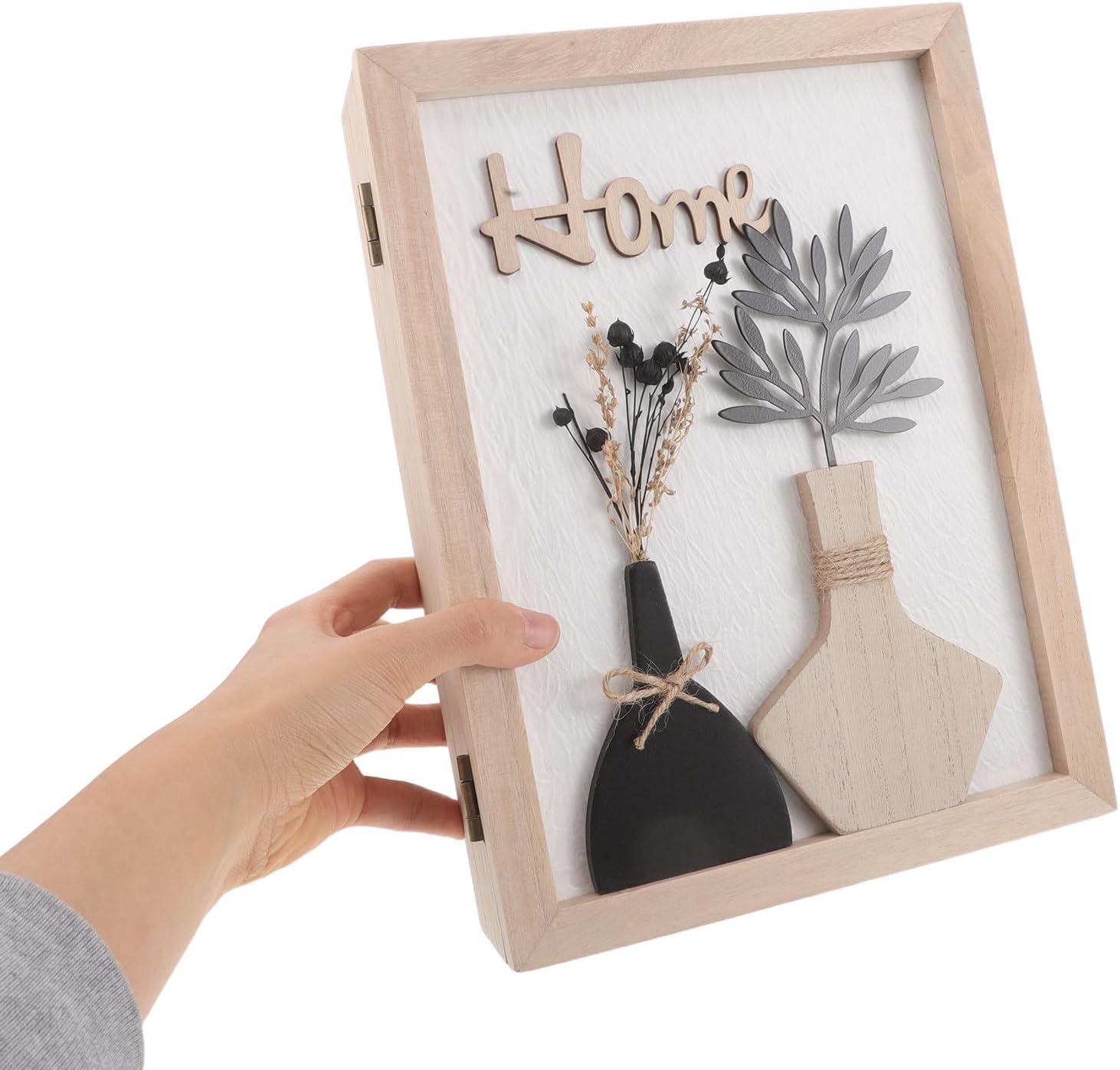 Description Add charm and organization with this wall mounted key rack, artfully featuring creative dried flower arrangements. The compact wood key holder hooks serve as both a functional key safes box and a decorative enclosed box Features -Color:Beige -Material:Wood -Size:27.00X20.00X6.00cm/10.61X7.86X2.36in -Rustic elegance: the decorative enclosed box incorporates dried flower details, creating a farmhouse key holder that brings warmth and artistry to your wall key organizer -Sturdy material: constructed from wood, this wall key holder combines durability with style, ensuring your key storage box remains secure and visually appealing -Organized storage: the wood key hanger organizer and key hooks design keeps keys, jewelry, and small valuables neatly arranged for easy access and stressfree living -Space saving: its compact wall mounted key box profile means you can mount the wooden storage box in small entryways or tight offices without sacrificing storage -Universal utility: great for both home and office, the wall mounted key holder works as a key safes box and retro treasure box