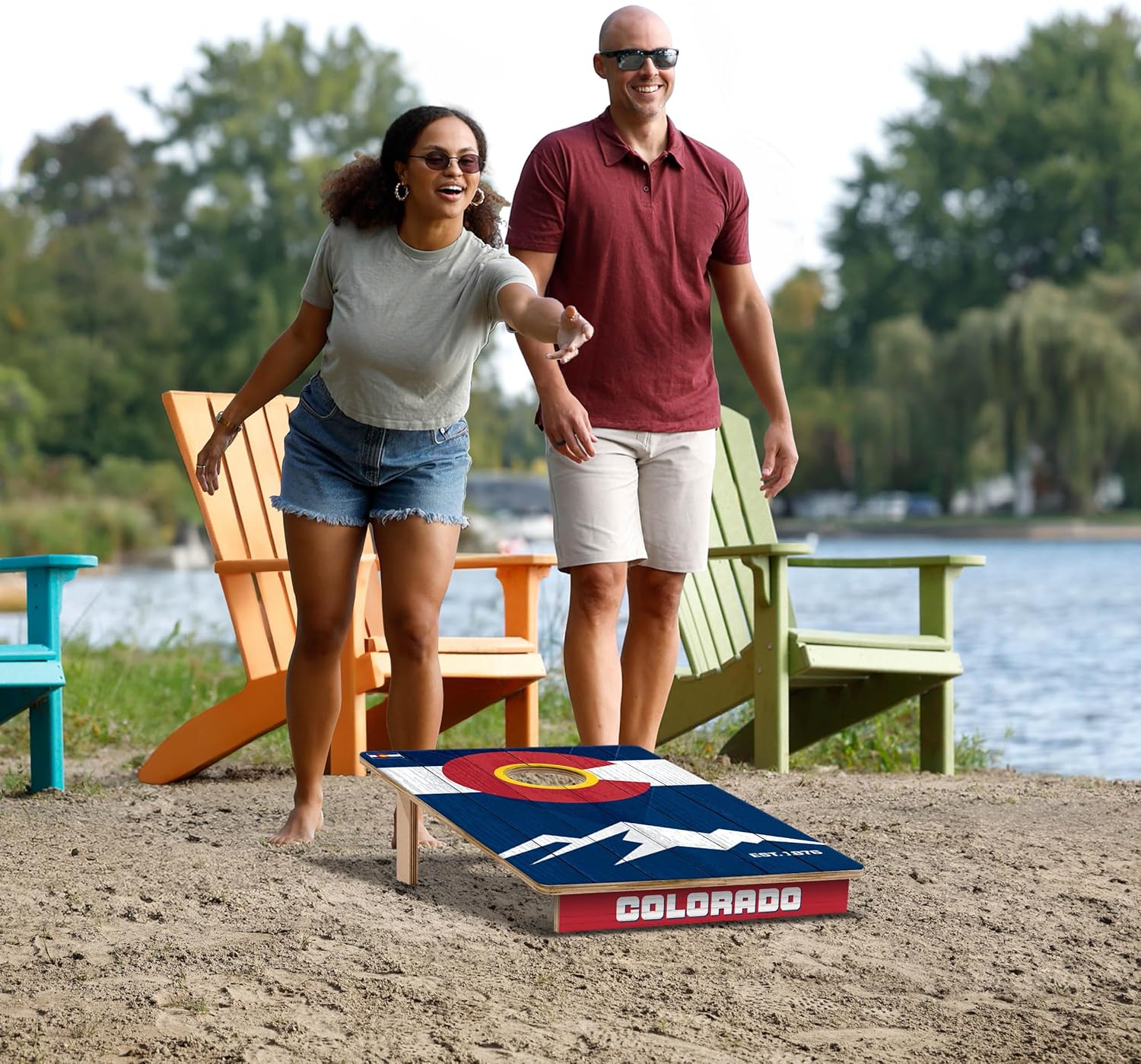 The all-wood construction sets this apart from the rest! This cornhole game set wins on quality construction and performance. The compact 2’x3’ all-wood board features striking graphics printed directly on the surface for long-lasting durability. It’s what every party needs!