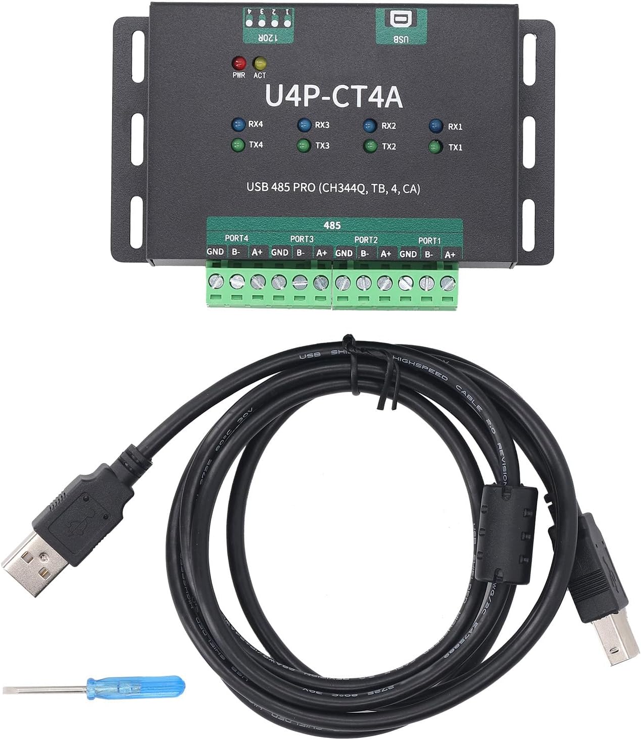 1. High Speed Data Transfer: The module features native for CH344Q and for SP3485 chips, ensuring a mature and stable solution. With a high speed USB interface of 480Mbps, it delivers stable, robust, and dependable data transmission. 2. Smooth Plugging: Equipped with a USB 2.0 B interface and a 5.08mm terminal, this module offers smooth plugging and unplugging actions. Its sturdy design ensures long lasting performance. 3. High Security: This module includes independent power and signal isolation circuitry, providing an added layer of security. The USB port features electrostatic ESD protective circuit to protect connected circuits and devices. 4. For RS485 Terminal: The for RS485 terminal is equipped with overcurrent prevention, surge prevention, and thunder gas discharge prevention. These make sure the module operates safely for a long time. 5. Signal Stability: With an onboard 120Ω terminal resistor, users can enhance signal transmission stability and minimize interference. This feature allows for flexible configurations. Spec: Item Type: USB Serial Port Module Material: Aluminum Alloy Type: USB to 4 Way for RS485 Conversion Support Baud Rate: ≤3Mbps Interface Shape: USB2.0 Type B Interface Prevention: 1. Electrostatic ESD Protective Circuit. 2. Uses USB2.0 B to Plug in Smoothly, Solidly and Reliably Protect the Rear Circuit and the Equipment Interface Shape: 5.08mm Terminal, 4pcs for RS485 Ports Interface Prevention: Overcurrent Prevention, Surge Prevention, Thunder Gas Discharge Prevention packing list: 1 x USB Serial Port Module 1 x USB Cable 1 x