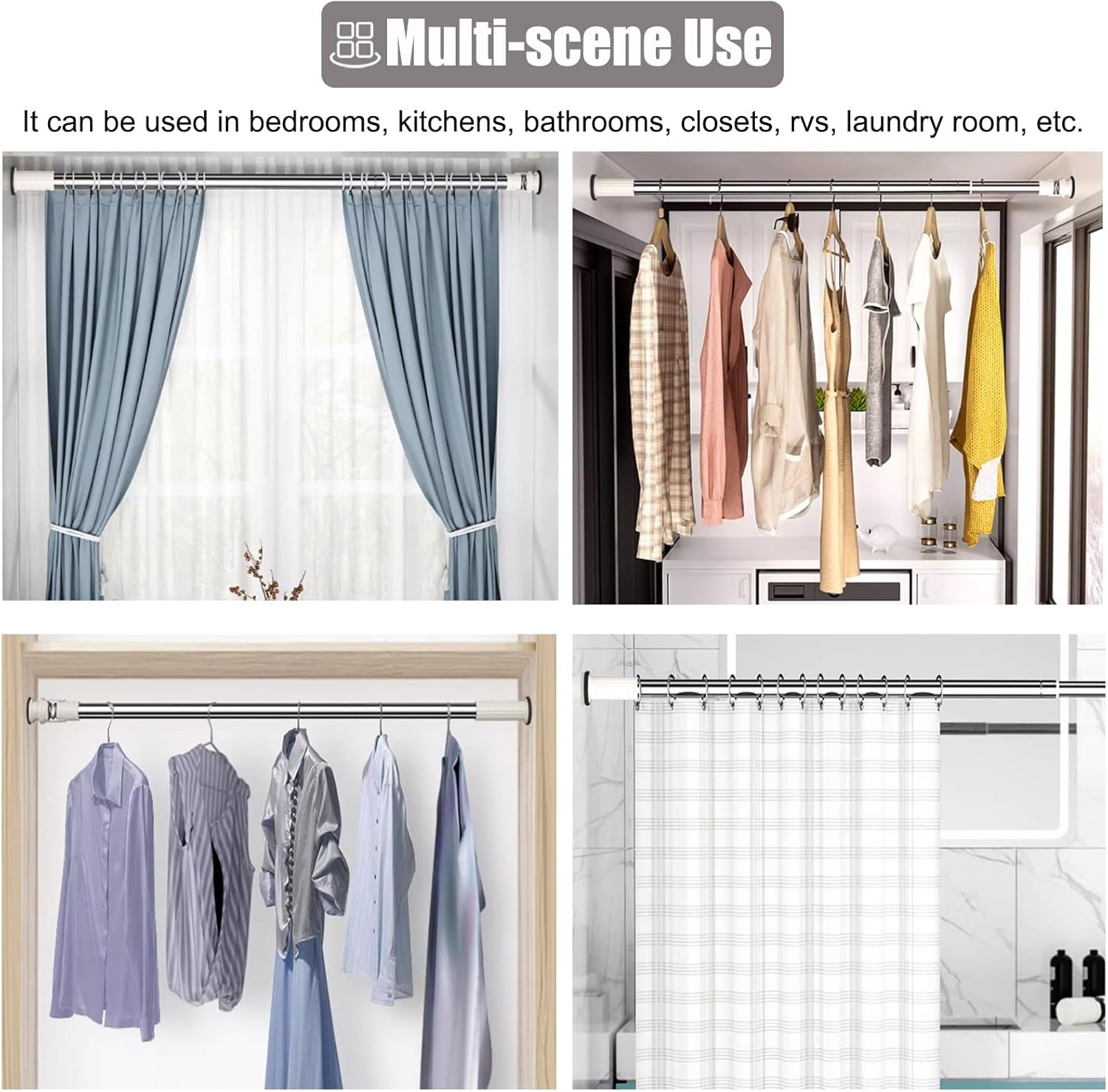 Are you still worried about the insufficient load-bearing capacity of the closet hanging rod, resulting in clothes falling? Are you still worried about the lack of closet space? Don't worry about it. Our superior closet rods will solve these worries for you!❉Package Include:- 1 × Closet Rod❉Specifications:- Material: Stainless Steel - Lengths: 50-80cm (19.7-31.5in), 70-110cm (27.6-43.3in), 90-160cm (35.4-63in), 110-200cm (43.3-78.7in), 130-240cm (51-94.5in), 160-300cm (63-118in), 210-320cm (82.7-130in), 255-380cm (100.3-149.6in)- Telescopic Rod Diameter: 3.2cm (1.26in)- Base Flange Diameter: 5cm (1.97in)❉Feature:- It is adjustable in height and length.- It is suitable for short and disabled people.- It's load-bearing capacity is very excellent.- It won't break even if you use it in wet places.- It's versatile and can be used in a variety of ways.- It is easy to install and suitable for any wall surface.- It expands the storage and organizing space.❉Note:- You need to put it together yourself before using it.- There may be some 1-2 mm errors in manual measurement, please refer to the actual product.- Colors might slightly vary due to the shoot lights and on different monitors and screens, please refer to the objects received.