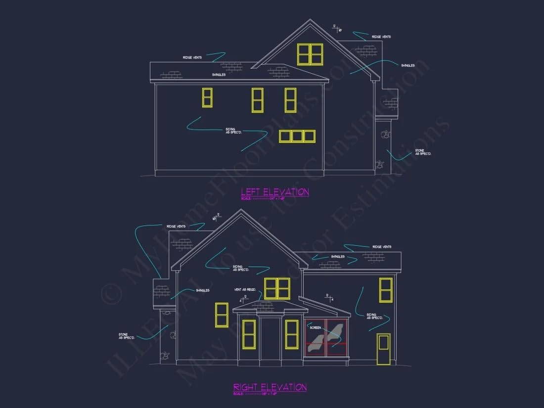 Width: 40′-0″Depth: 52′-6″Htd SF: 2,581Unhtd SF:Modern 2-Story House Plan with 4 Bedrooms and CAD Floor BlueprintsDiscover this stylish modern home layout with 2,581 heated sq. ft., 4 bedrooms, open floor plan, and architectural CAD blueprints included.This modern house plan offers an ideal blend of contemporary design and practical living. With an open-concept layout, abundant natural light, and smart architectural detailing, it's a perfect fit for growing families and custom builders.Key Features of the Home PlanLiving Areas - Heated & UnheatedHeated area: 2,581 sq. ft. across two stories.Unheated extras: Covered front porch, screened rear porch, and a 2-car garage.Bedrooms & Bathrooms4 spacious bedrooms including an Owner Suite with a walk-in closet and private bath.3.5 bathrooms—ideal for both family living and guest comfort.Interior Highlights9'+ ceilings throughout for a grand and open atmosphere.Open floor plan merges the kitchen, dining, and family areas. Explore open layouts.Fireplace anchors the living space with warmth and style. View fireplace homes.Mudroom and upstairs laundry streamline everyday routines.Garage & Storage DetailsGarage Bays: 2-car garage with convenient access to the mudroom.Garage Type: Attached garage enhances functionality.Storage: Ample closets, plus garage and mudroom organization.Outdoor Living FeaturesScreened rear porch for bug-free evenings and family hangouts.Covered front porch offers curb appeal and a welcoming entry.Architectural Style: Conventional ModernThis layout combines timeless materials with clean lines for a design that stands the test of time. Learn more about the Conventional House Plan style or explore inspirations from ArchDaily's modern architecture guide.Bonus FeaturesFoyer entryway that creates a beautiful first impression.Breakfast nook perfect for casual meals and sunny mornings.Optional flex