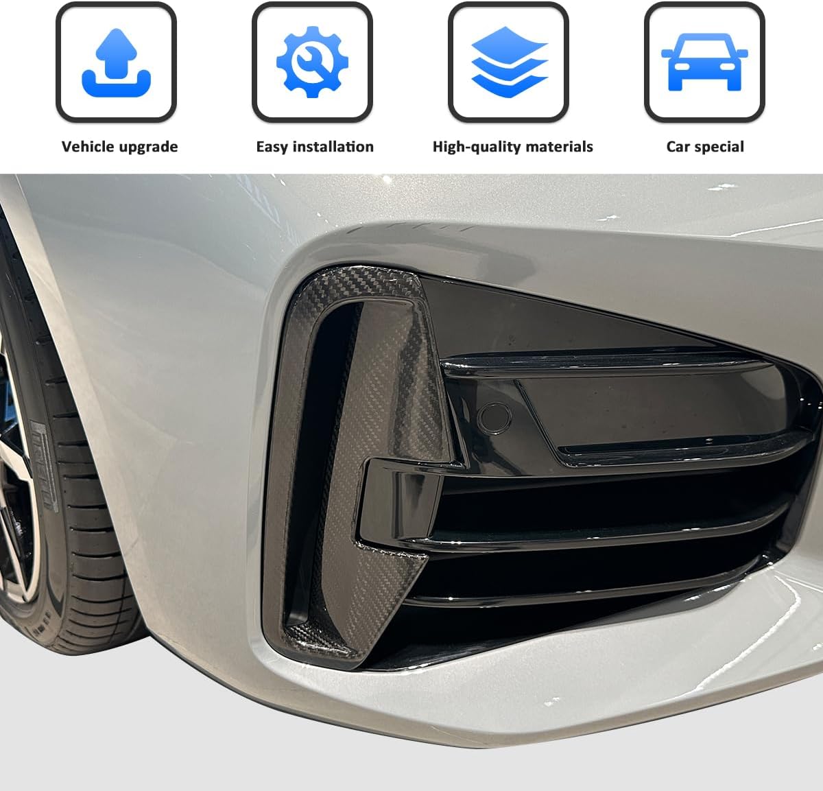Features - Material: Made of High Quality 100% Real Carbon Fiber - Easy installation with double-sided tape - Color:Black - Please confirm your car model is as same as the picture before submitting your order - NOTE- In case it fall off for some car models, just add some tape and put the cover back on,then they will work perfectly Description Item type: Auto Exterior Accessories Installation method: 1) Clean the surface, keep dry and clean. 2) Paste and install. (there is 3M auto adhesive glue in the trim back) 3) Please press hard especially on the edges at least 2 minutes after installing. 4) Using hair dryer (hot air blowing) in cold weather. 5) Please keep away from water and keep dry after been installed within 72 hours/3 days. Package include: 2Pcs Car Front Fog Light Frame Cover