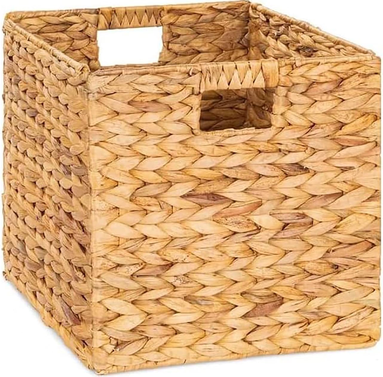 Storage Baskets Wicker Cube Baskets Foldable Woven Bins Set, Set of 3 Collapsible Cube Organizers, Water Hyacinth Laundry Organizer Baskets, 10.5*10.5 inches Woven Baskets, Wicker Storage Basket, Water Hyacinth Storage Baskets. How to Measure Your Cube Storage Unit or Shelf Size: Before ordering our storage baskets, we recommend you measure the inside of your cube storage unit for the best fit. Use a tape measure to check the interior width, depth, and height of the cube — measuring from inner edge to inner edge. Note: Do not measure the exterior frame. Why Chooes Our Shelf Baskets: Durable Material: Sundries Storage Basket is sturdy iron wire frame and Natural Water Hyacinth Hand Made Woven.The decorative shelf basket for storage are elegance to provide long term use. Easy Clean: They can easily be cleaned with a damp cloth. Portable, Durable & Hand Woven – Made For Long Term Used. Versatile Design: Open Storage Bins used to store books, magazines, towels or shoes,Perfect for use on shelves, in closets or as a decorative accent piece in any room of your home. Our hand woven storage baskets with handles are designed to keep your home. Multipurpose Portable Basket: The woven baskets fold flat for easy storage, organized while adding a cozy, welcoming, and stylish look to your decor the simple way. Handmade woven storage basket adds a touch of rustic charm to your home decor. Practical storage space: The storage baskets are both durable and lightweight to handle day to day use while being a breeze to carry and move. Whether it's your home or office, our storage baskets for organizing have you covered. They are ideal for storing away books, clothes, kids toys and anything else you have in mind.