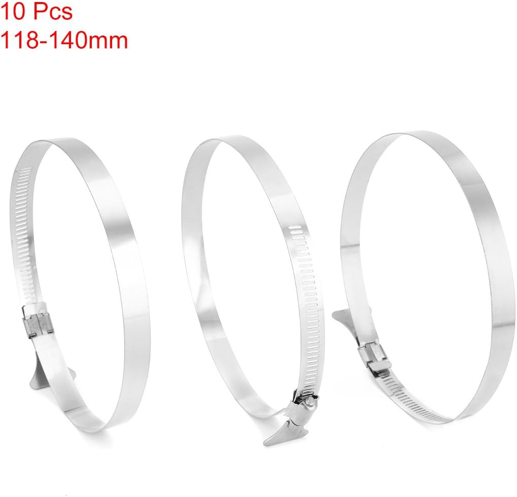 Aexit 118mm-140mm Clamping Range 304 Stainless Steel Butterfly Hose Clamp 10pcs (6e914bc17626b936db4ce34c567f14b2)1. Hydro flow butterfly hose clamps make for quick and each attachment of ducting to collar fittings.2. Made from quality stainless steel, this hose clamps uses a butterfly style tightening tab. 3. No screwdriver or tightening tool required.4.Just turn the tab to desired fit and rest assured the clamp will not stretch or slide off.5. Unique butterfly shaped screw head easily twists for hand tightening without tools.0Specification:Product Name: Hose Clamp Package Content: 10pcs x Hose ClampWeight: 367gMaterial: 304 Stainless SteelColor: Silver ToneDesign: Butterfly Handle TypeBand Width: 12mm / 0.47-inchBand Thickness: 0.6mm / 0.024-inchHandle Size:20 x 24mm / 0.8-inch x 0.95-inch(L*W)Clamping Range: 118-140mm / 4.65-inch-5.5-inchDescription in French118mm-140mm 304 Plage serrage collier papillon inox 10pcsLes pinces à tuyaux papillons à écoulement hydraulique permettent une fixation rapide et chaque fixation de conduits à des raccords de collier.La qualité de l'acier inoxydable, ce colliers de serrage style papillon utilise un onglet.Pas de tournevis ou un outil de serrage requis.Tournez simplement la languette à l'ajustement désiré et assurez-vous que la pince ne s'allonge pas ou ne glisse pas.La tête de vis unique en forme de papillon se tord facilement pour serrer à la main sans outils.
