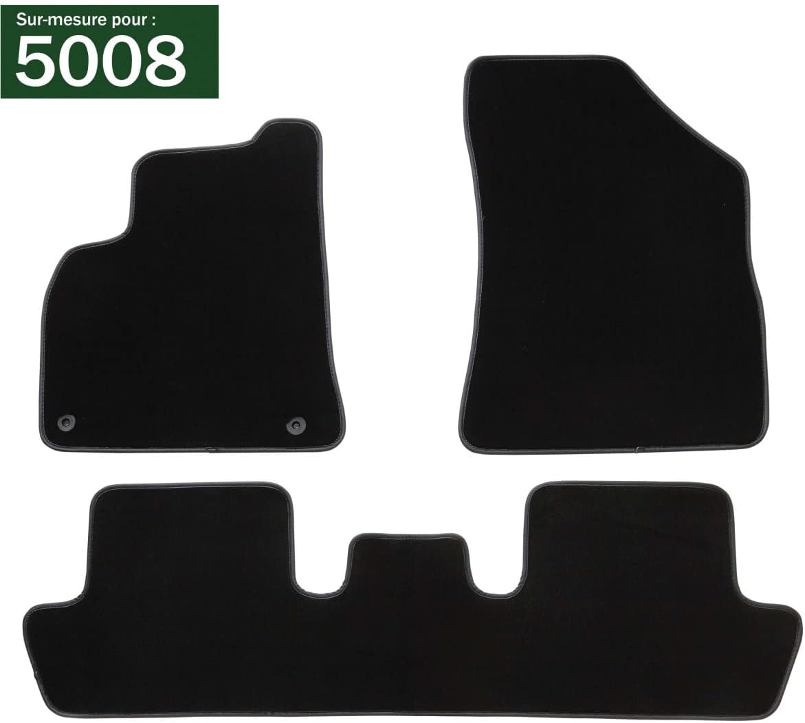 This car mat set is custom-made in order to adapt perfectly to your PEUGEOT 5008 (from 06/2009 to 03/2017). Exclusively, the driver’s car mat has our patented Autogrip technology, so it will maintain perfectly on the floor of your vehicle. It avoids also slipping under the pedals and guarantees a high security! The back of the passenger car mat is provided with an adhesive undercoat of gel that allow it to be non-skid on all carpet types. Those car mats permit a perfect holding on more than 100.000km. Furthermore they are easy to maintain and resistant to usury. So they are the ideal way to preserve the cleanness of your car. The car mats of the “Luxe” range are delivered with original fixation clips for a perfect adaptation to your vehicle. Those customised car mats are produced in manufacturer quality with a carpet of TUFT which gives them a velour aspect . Easy to maintain, the density of 1000g/m² permits them to catch less soling’s then traditional carpets. The borders of the car mats are in braided quality of black colour for a high quality finish. Sober, they adapt perfectly to all vehicle interiors.