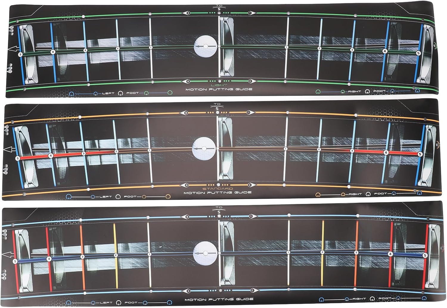 [Premium Quality & Durability] Crafted from high-grade pu material, this 3-piece putting training mat set is designed to withstand rigorous use while maintaining its integrity. the wear surface ensures long-lasting performance, making it ideal for both indoor and outdoor practice sessions. its robust construction guarantees durability, so you can on perfecting your putting skills without worrying about wear and tear. [Enhanced Putting Accuracy] This dynamic putting guide mat is engineered to refine your putting technique with precision. the alignment track helps you correct your stroke, ensuring optimal ball direction and consistency. by practicing with this mat, you’ll develop better control over strength and direction, leading to improved accuracy and higher success rates on the green. [Perfect Strike Point Control] Achieve putting strokes by stabilizing your strike point with this innovative training aid. the mat’s design assists in finding the ideal contact spot, allowing you to fine-tune your power and alignment. whether you’re a beginner or a seasoned golfer, this feature will elevate your putting game by ensuring each stroke is executed with confidence and precision. [Versatile Training Solution] Suitable for golfers of all skill levels, this putting practice mat is perfect aiming for excellence, amateurs looking to improve, and youth just starting their golf journey. its adaptable design caters to various training needs, making it an essential tool for anyone serious about mastering . [Muscle Memory Development] The putting alignment track mat creates a visual and physical guide for your entire putting motion, from stance to follow-through. this helps ingrain the correct stroke sequence into your muscle memory, promoting smoother and more consistent swings. over time, you’ll notice a natural improvement in your putting rhythm and overall performance. Spec: Item Type: Putting Guide Mat Material: