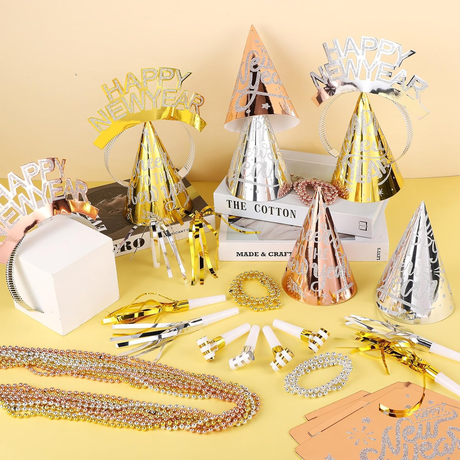 | Included Components | 100 x Beaded necklace, 100 x Cone hats, 100 x Curled squawkers, 100 x Glitter tiaras, 100 x Tassel squawkers |