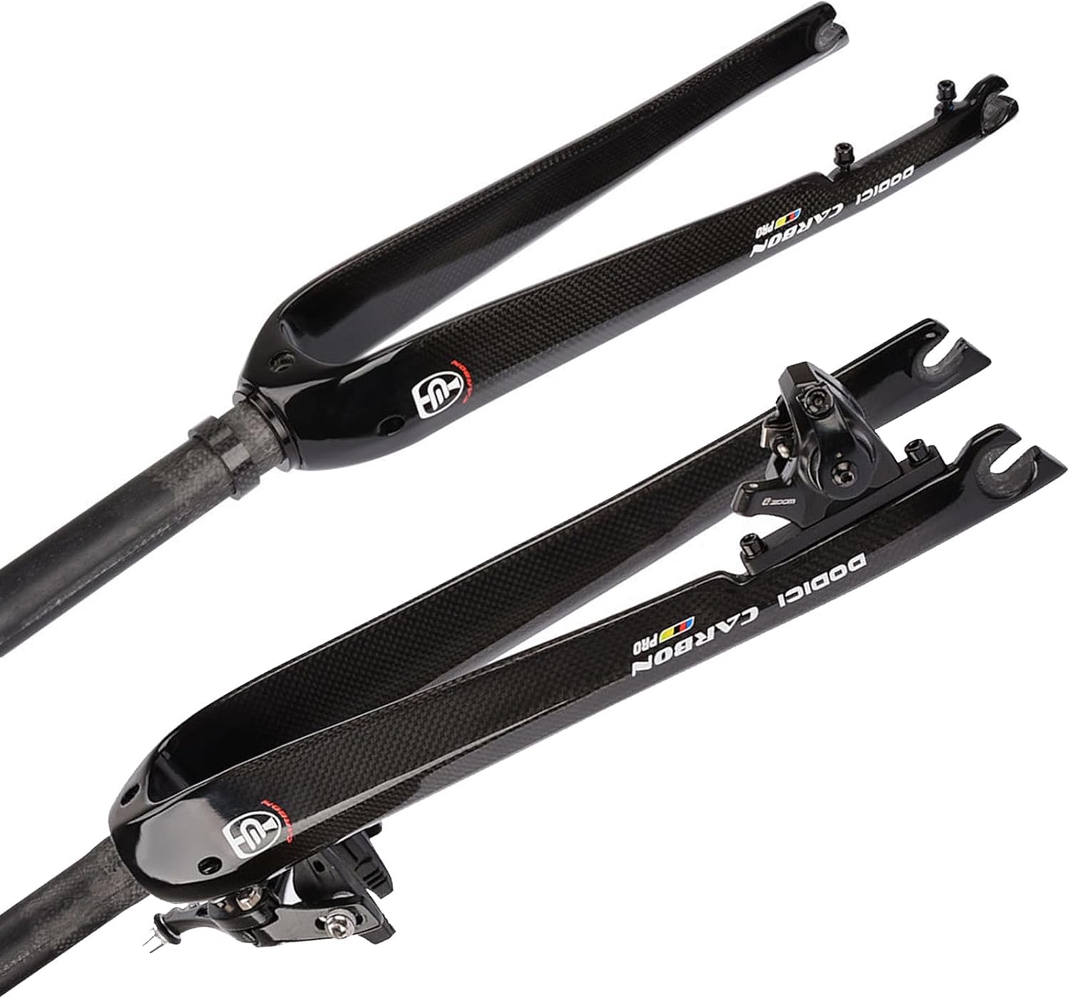 Carbon Fiber Road Bikes Rigid Fork 700C Disc/C Brake Hard Fork Quick Release Front Fork 1-1/8" Straight Tube ThreadlessInformation:Size:Gravel Bike Rigid Fork Color: BlackSize: 700CMaterial: T800 carbon fiberSteerer tube type: 1-1/8" straightSteer Tube Diameter: 28.6mmBottom File: 30mmSteerer tube lenth: 300mmQuick Release: 9*100mmBrake: C Brake/Disc Brake, Supports Bike Disc Brake Rotor 140/160MMApplicable tires: Support out tire 700*18/20/23/25/28/32C, max 700C*32C tiresScope of application: Road bikes, Gravel bikes, City bikes.Weight: About 380±20gPackage:Rigid Fork x 1Attention: 1: If you have any product and service questions, please contact us, we will reply you within 24 hours.2.Please allow slight dimensional tolerances due to manual measurements, lighting in photography may cause color differences from real life.