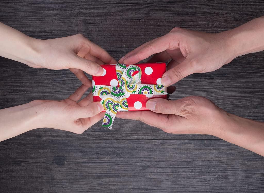 🎭 Mardi Gras Polyester Decor Ribbons Mardi Gras Theme Decor Fabric Ribbons, flower-de-luce Masks Green Purple Yellow Grosgrain Fabric Ribbons for Mardi Gras Carnival Holiday Party Gift Wrapping Decoration Crafts Supplies 🎭Features:💜 High quality andwell-knit grosgrain polyester material, the color are not easy to fadeand damage.💜 Mardi Gras theme and color and grosgrainset off more lively atmosphere, unique design with heart!💜 The soft polyester material makes the ribbon easier to tie and decorate, make it easier to storefor next use.Package includes:9 Pieces x Mardi Gras Topic Fabric Decorative Ribbons (3/8" Inches wide,3 Yards)Note:1. Thecolor may exist slight difference due to different screen displays.2. Pleaseallow slight errors on size because of manualmeasurement.WarmTips:** The risk of entanglement may occur,children should be accompanied by their parents **