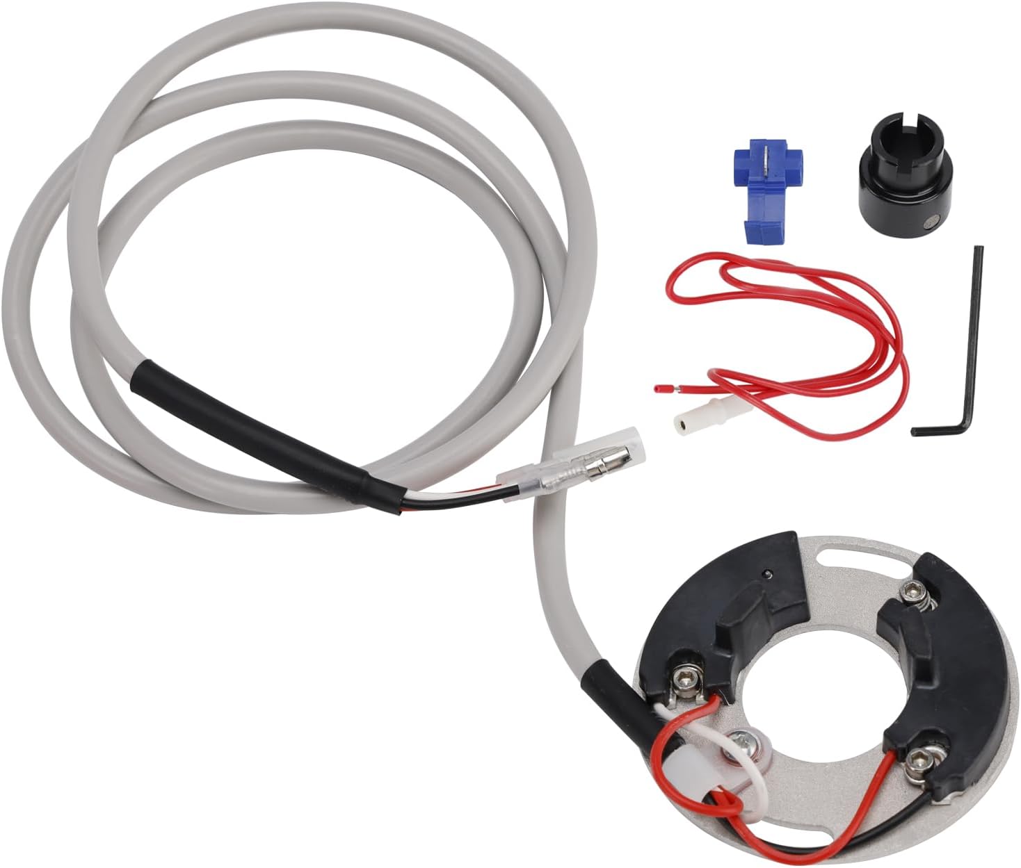 Features:Completely self-contained, and install behind the points cover without modification.Housed behind the ignition cover and uses a magnetic rotor with the original spark advancer, so the factory advance curve is maintained.Replaces points and condensers, as well as many original electronic units.Ready to mount, plug in, complete with cable sealing grommet.Replaces points and condensers.Installation instruction Not included.Fits Make/Model/Year: Fit for Moto Guzzi V35 1977-1987Fit for Moto Guzzi V50 1977-1990Fit for Moto Guzzi V65 1982-1992EXCEPT EARLY BOSCH OEM!!!(Compatibility Chart is for Reference ONLY!!!) (Please Compare with Your faulty unit and the image we provided to Decide ★Fitments) ★Package Included:1x Contact Points Plate AssyNOTE:The product on offer is an accessory or spare part and thus is not an original product of the vehicle manufacturer.The name of the vehicle manufacturer is stated only as an indication of the determination of the product being offered as an accessory or spare part, to clarify, for which vehicle the product on offer fits.