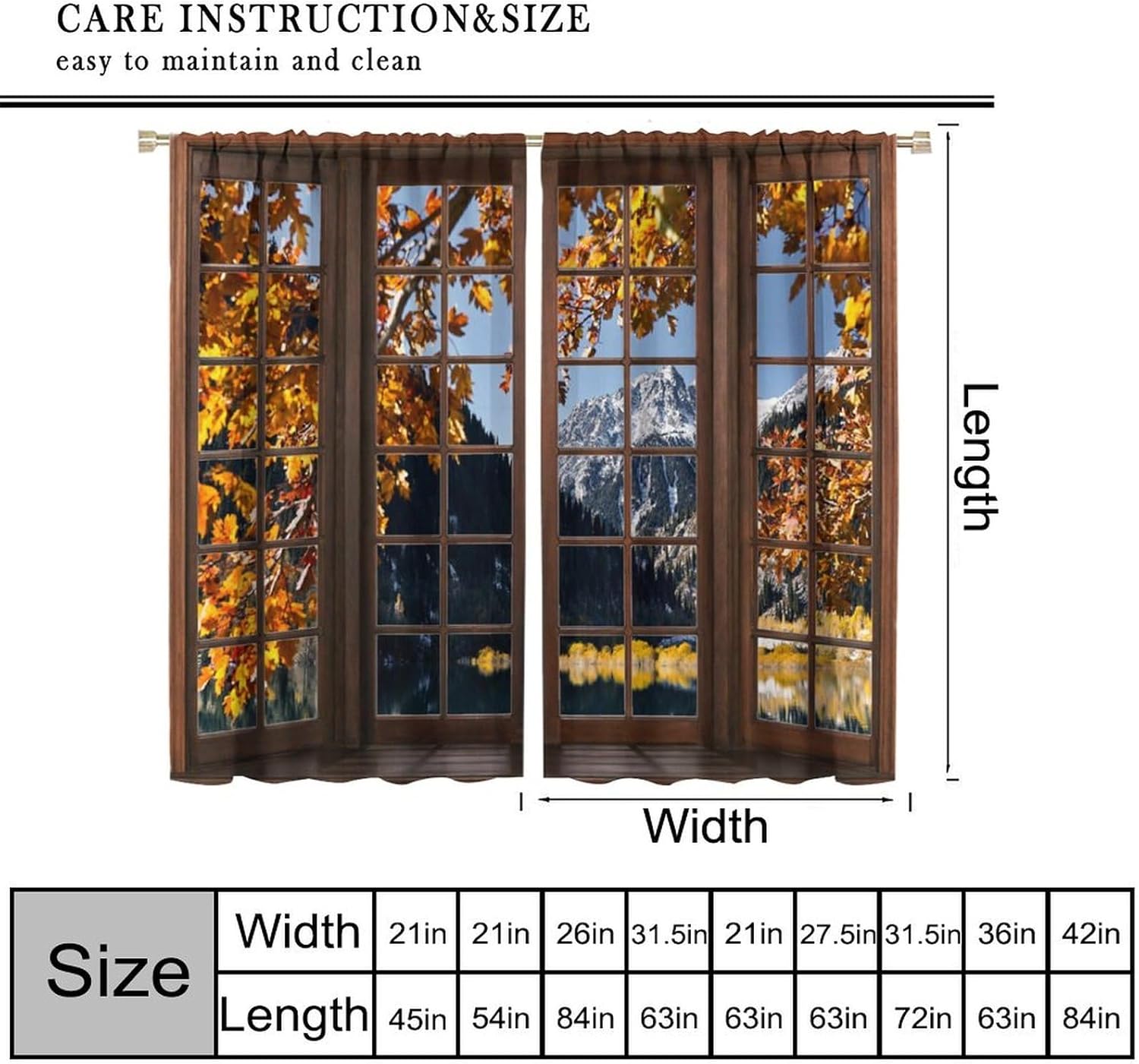 ✦Welcome to our store, thank you for choosing our store among many! We will do our best to provide you with high-quality service. The dimensions of our products have been marked below. If you don't have the size you want, you can consult us in the background, and we will provide you with timely service to customize the size you want.✦Our common sizes include nine types: 42x45 Inch, 42x63 Inch, 42x54 Inch, 52x84 Inch, 55x63 Inch, 63x72 Inch, 63x63 Inch, 72x63 Inch, and 84x113 Inch. The above are the total dimensions of two curtain panels.✦Our curtains are designed with Rod Pocket, easy to install, you can start installing it yourself after receiving the goods, easy to install and time-saving. Exquisite prints can decorate your home even more beautifully, and you can rest assured to choose our products. The material used is not prone to wrinkles and can be well cared for.