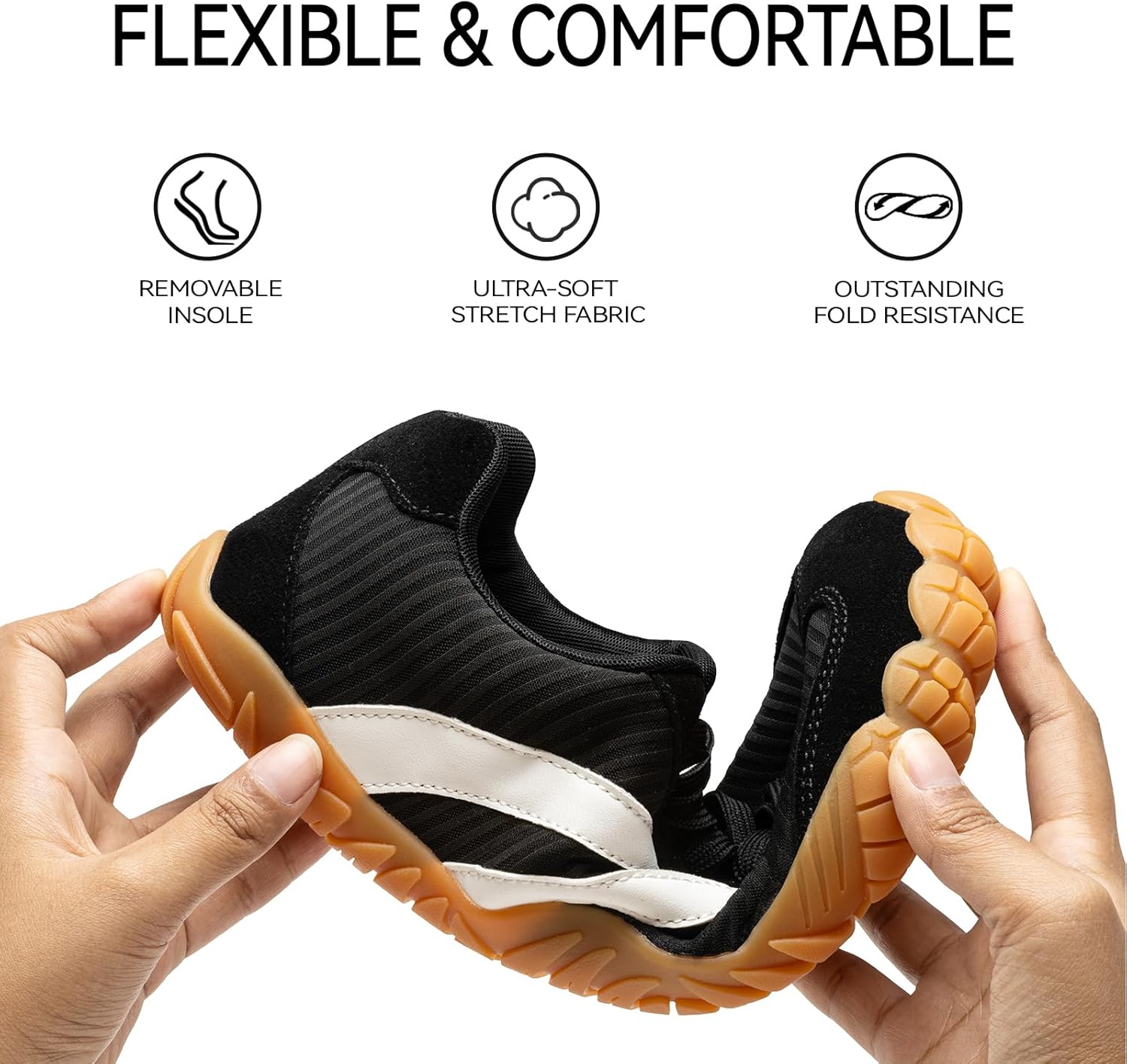 Step into Freedom: Experience the Unparalleled Comfort of Our Barefoot SneakersIn today's fast - paced world, our feet long to break free from the constraints of heavy footwear and embrace the most authentic walking experience. Our barefoot grounding shoes for women are designed with revolutionary concepts to redefine your shoe - wearing feelings. Whether you're commuting, exploring the great outdoors, or working out, your feet will enjoy the ultimate freedom and comfort, just like walking barefoot in nature. Why Choose Our Barefoot Sneakers Women Walking Shoes?Barefoot Walking Shoes- Inspired Comfort: All - Day Breathability, No More Squeezing or SultrinessCrafted from ultra - light materials and featuring a 3D breathable design, our casual sneakers are as light as a second skin. They can quickly dissipate foot moisture and keep your feet dry all the time. The wide toe box offers ample space for your toes to stretch, eliminating the squeezing feeling of traditional shoes. Even after hours of walking or standing, you'll stay cool and fatigue - free, making the dream of 'barefoot freedom' a reality. Wide Toe Box: Superior Traction and Natural Feel, Toe - Deformity PreventionOur women's men's barefoot shoes come with a generously wide toe box. This smart design not only provides better traction for a more natural walking sensation but also effectively prevents toe deformities caused by compression. You'll feel the difference with every step, as your feet can move in a more unrestricted and healthy way. Zero - Drop Sole: Flexibility, Durability, and Natural Posture PromotionThe flexible and durable rubber sole with a zero - drop design is slip - resistant. It promotes a natural body posture, ensuring a comfortable and well - balanced fit. This sole design allows your feet to move in a more natural and efficient manner, reducing the risk of injuries and enhancing your overall walking and standing experience. Arch Support Insole: Ergonomic Design for Optimal Foot CareDesigned with ergonomics in mind, the insole in our men's and women's barefoot hiking shoes offers gentle arch support. It precisely conforms to the natural curvature of your foot's arch, activating the foot muscles. This not only provides stability but also adds an extra layer of comfort, whether you're on a long hike or a short stroll. Versatile for All Activities: One Shoe, Endless PossibilitiesOur women barefoot casual sneakers are suitable for every occasion. Whether you're running, walking, hiking, trail running, playing tennis, ice skating, hitting the gym, or just doing some exercise, this single pair of shoes can handle it all. And with their stylish and casual look, they can also be paired effortlessly with your everyday outfits, making them a must - have in your wardrobe. Choose our barefoot retro sneakers and set your feet free. Let every step be filled with strength and comfort.