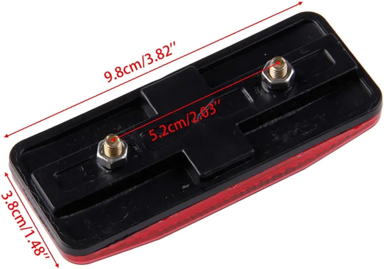 Please measure your size before purchasing.Durable, easy installThis fantastic reflector set is deal for attaching to Bikes, Motorcycles, Vehicles, TrailersGreat for improving visibility in dark and poor light conditionsFor improving safety in the winter.Type: ReflectorFeatures:Water ResistantMaterial:PlasticSize:9.8cm 3.8cm/3.82'' 1.48''(approx)Color:RedQuantity: 1 pcNote:No retail package. Please allow 1-3mm error due to manual measurement. pls make sure you do not mind before you bid. Due to the difference between different monitors, the picture may not reflect the actual color of the item. Thank you!