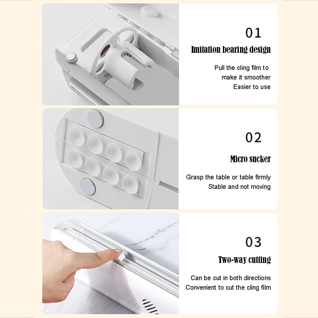 NPQPNAFCProduct informationProduct name: plastic wrap cutting boxProduct color: whiteProduct material: ABSProduct size: 38.6*5.7*6.2cmHow to use: Place it on the desktop or hold it to cut the cling filmSpecial statement: We only sell plastic wrap Due to different light and screen , the color of the product may be slightly different from the picture. Due to manual measurement, please allow a slight deviation.