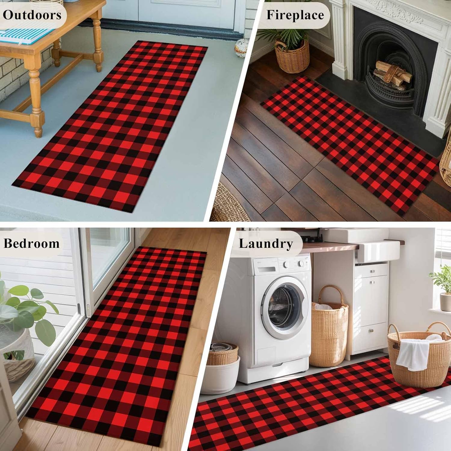 Living Room - Stunning DecorLiving room carpet will instantly change the tone of your living room and complement your furniture and accessories to create an atmosphere of refinement and harmony.Bedroom - Soft & ComfortableLike a warm hug, this modern rug creates a peaceful atmosphere for your feet, allowing you to enjoy comfort on sleepy mornings or lazy Sundays.Bathroom - Floors DryBath mat absorbs water droplets, avoid slips and leaving your feet warm and soft - much better than cold tile. Bathroom mats dries quickly and is easy to clean.Playroom - Protective BarrierBaby play mat can cushion the impact of falls, making crawling more fun, and they can also protect floors from toy cars speeding across them, making playtime easier.Entryway - Stops Dirt at the DoorMud, rain, snow, crumbs - whatever your shoes get on, this front door mats outdoor can handle it. Outdoor mats for home entrance effectively traps dirt and avoid it from spreading throughout the room.Office - Less Aches, More FocusThe cushioned support of this office chair mat for carpet makes it easy to stand or work at a desk for extended periods, keeping you productive and comfortable throughout your busy days.Dining Room - Minimizes Noise & Protects FlooringRubber mat dampens the sound of chair movements and footsteps, and protects floors from scratches, dropped cutlery, and spilled food, allowing you to enjoy a comfortable dining experience.Pet Zone - Not Easy to WearWhether it's playful swooping, quick turns, or the occasional digging, the farmhouse rug alfombra won't pull or tear. No need to panic when your paws hit the floor.Outdoor - Indoor Comfort OutsideAdd this outdoor carpet to your balcony, sunroom, or patio for an instant outdoor living room. Outdoor door mat is tough enough to handle all weather conditions.