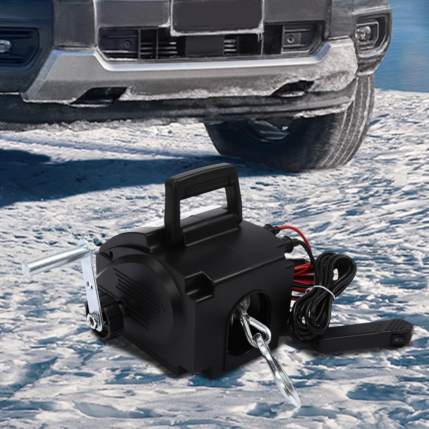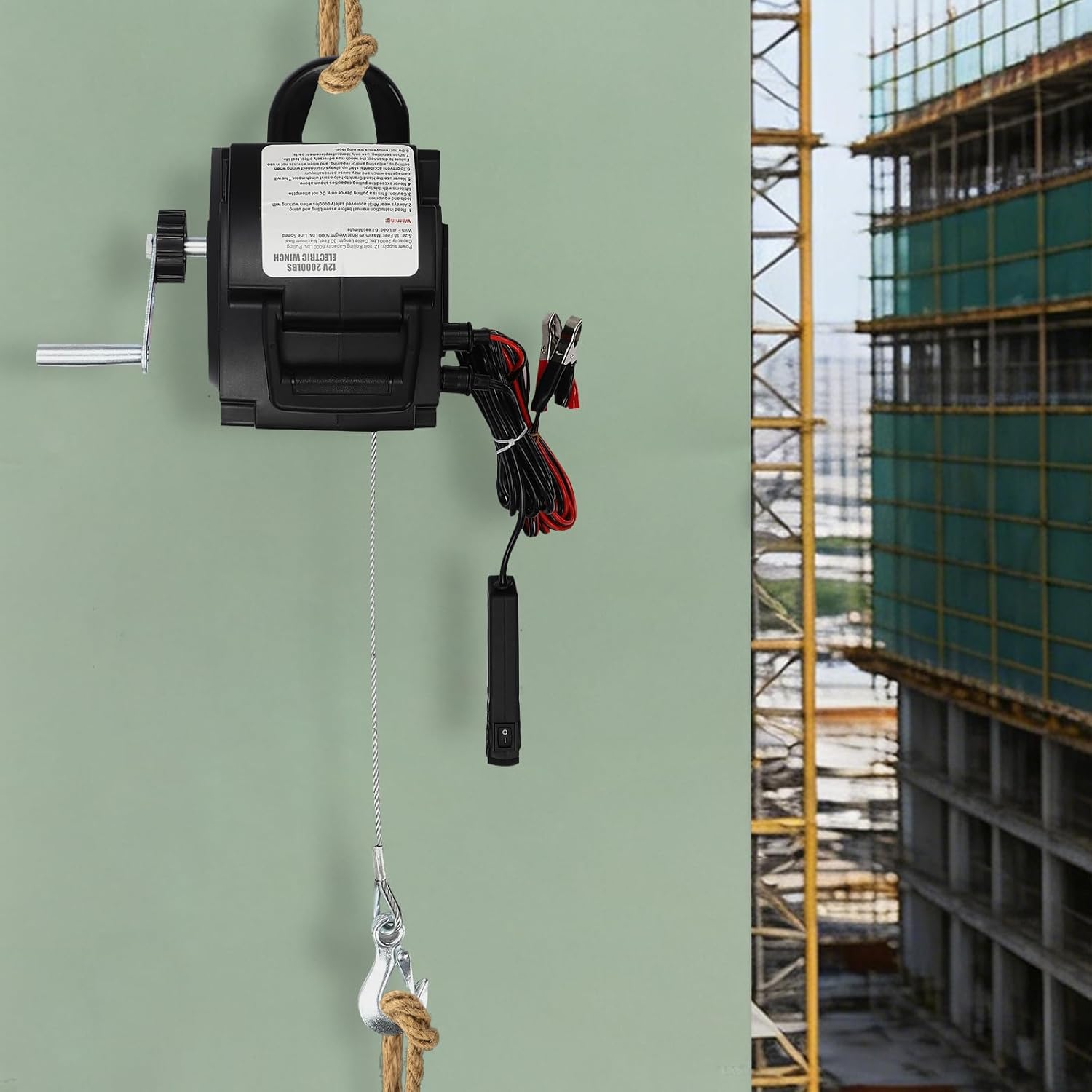 SpecificationsColor: BlackMaterial: Steel, ABSWinch Direction: UnidirectionalMotor Type: Permanent Magnet Copper DC MotorControl Mode: Wire Control, Hand ControlAssembly Required: YesRolling Force: 2721.55/6000lbsFloating Pull Force: 2267.96kg/5000lbsRated Pull Force: 907kg/2000lbsMaximum Size of the Boat: 6m/19.68ftMaximum Weight of the Boat: 2267.96kg/5000lbsMotor Power: 300W, 12VGear Reduction Ratio: 465:1No-load Speed: 1.8m/sWire Rope: Φ4.8mm*9.2m/Φ0.19inch*29.53ftPower Cord Length: 3m/9.84ftSwitch Line Length: 3m/9.84ftMounting Plate Size: 22.23*12.54*0.48cm/8-3/4*4-15/16*3/16inchInstallation Size: 227*113*31.7mm/8.94*4.45*1.25inchProduct Size: 203*218*170mm/8*8.58*6.69inchWeight: 16kg/35.27lbsPackage Included1*Electric Winch1*Mounting Plate1*Hand Crank