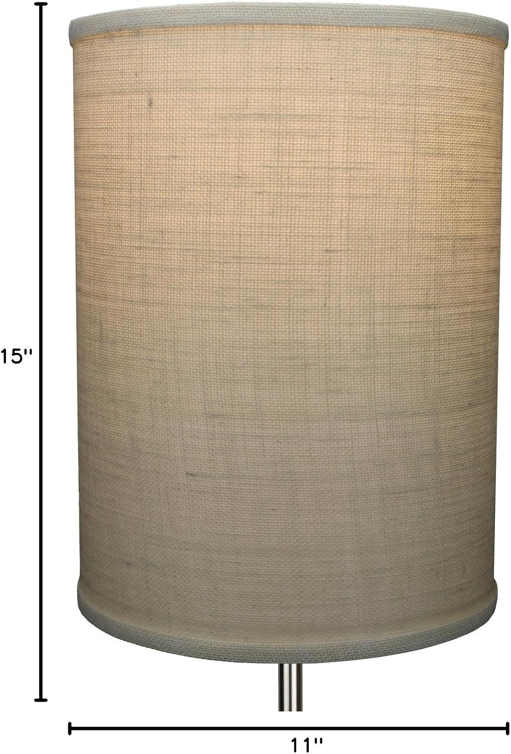 This lamp shade is not an imported product. It is made with pride in the USA, and construction does not begin until you place your order. By request, you may specify changes to the dimensions, covering or the hardware color. (Extra charges may be necessary.) This shade is equipped with a Washer fitter. This is the most common fitter type. It consists of a small washer with an inner diameter hole size of approximately 1/2". The washer generally rests on the top of a metal harp above the light bulb and is held in place by a screw-on finial.The outside of the lamp shade has a fabric covering. The inside is a white styrene (white plastic). The top and bottom of this item is adorned with a 1/2" band of single fold lampshade trim. The trim is the same color as the covering.