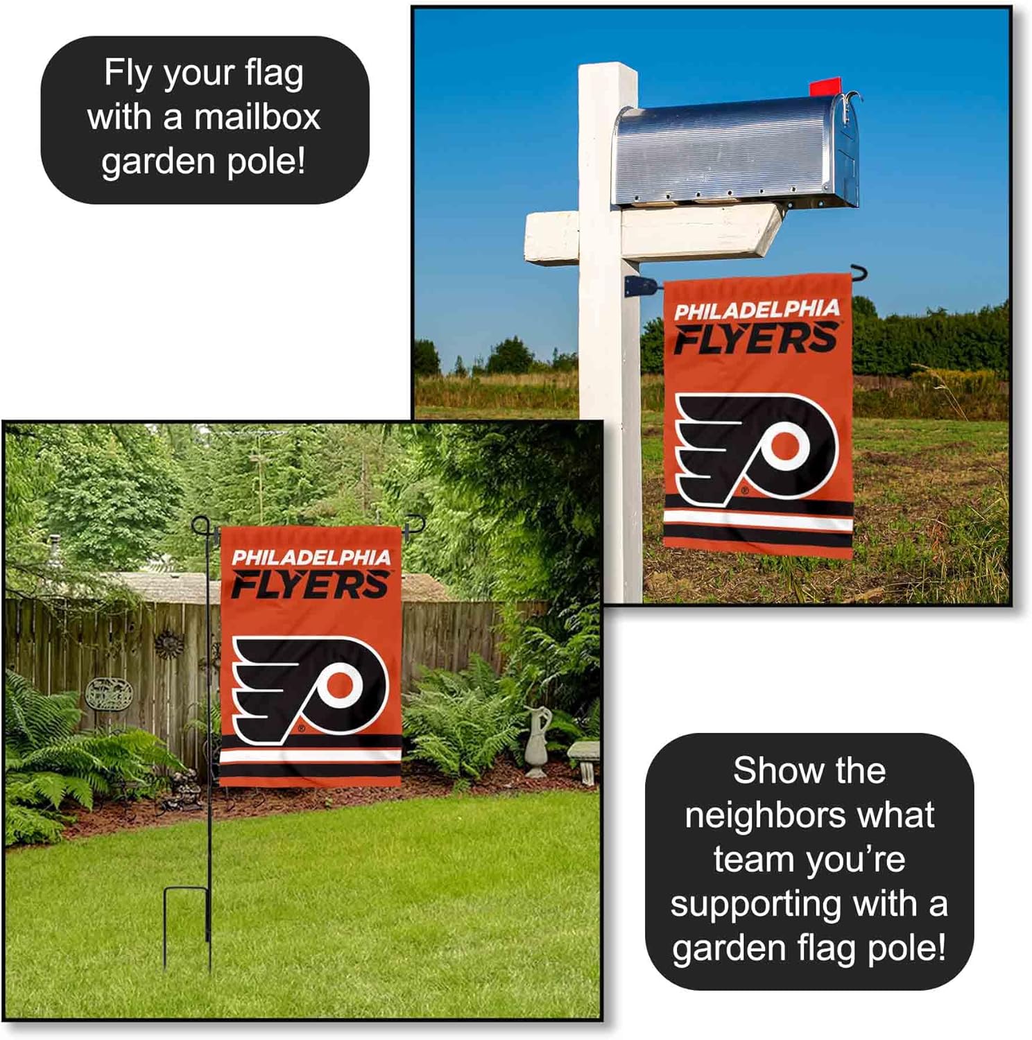 Perfect for your garden or home entrance is our double sided garden flag. This double sided League Garden Flag measures a large 12.5 in x 18 in, has a Double Stitched border, a 1.5 inch top sleeve, and is made of 2 ply Polyester with liner so the logos are Viewable and Readable Correctly on Both Sides. The Screen Printed team logos are Officially Licensed and Approved by the League and Team. (Flag Only, Accessories Sold Separately)