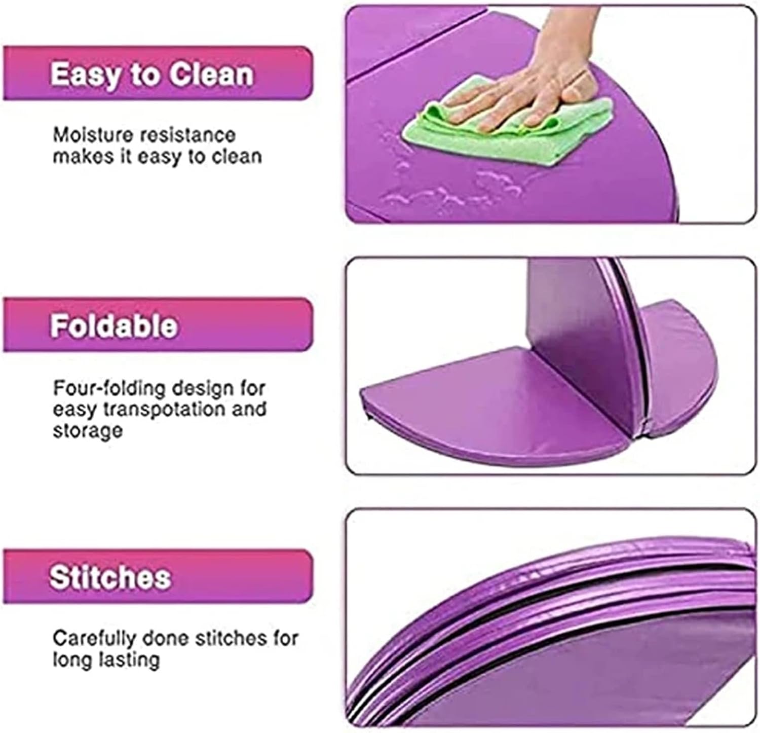 Foldable Pole Dancing Mat Round Workout Gymnastics Pads Anti-Fall Anti-Skid Protection Mat for Pole Dance Safety Mat Yoga GymName:As PictureMaterial: PU(Polyurethane) + EPU(Expandable Polyethylene)Size: Approx.Diameter:120CM/150CM/200CMThickness:3/5/10CMPackage included:1 x Pole Dance MatFilled with cotton, stick strips for convenient closing.Faux leather for hard wearing and softness.Foldable + portable, easy to store + transport.Circular safety mat that can be folded up into quarters making storage.Durable, lightweight, skid-proof and waterproof, easy to wash.Great for pole dance exercise or other fitness exercise sports such as yoga, tumbling, stretching, etc.Can be used at home or training room, ideal for keeping pole dance beginners from hurt.