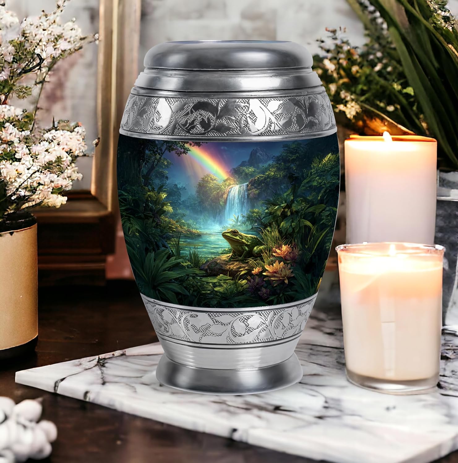 YATHABHISA 10-Inch Frog Memorial Container, a distinctive tribute crafted for those who loved locomotives, travel, or timeless design. This full-sized commemorative vessel offers a dignified resting place for adult remains, holding a complete set of ashes securely within its durable structure. Designed with intricate Frog detailing, it serves as both a remembrance sculpture and a meaningful keepsake. Whether used as a funeral receptacle, home memorial piece, or burial capsule, it reflects Froge, respect, and personal significance. Ideal as a decorative tribute for a beloved father or rail enthusiast, this ash holder brings comfort and beauty to any space. A perfect blend of artistry and remembrance, it ensures your loved one’s legacy remains ever-present.