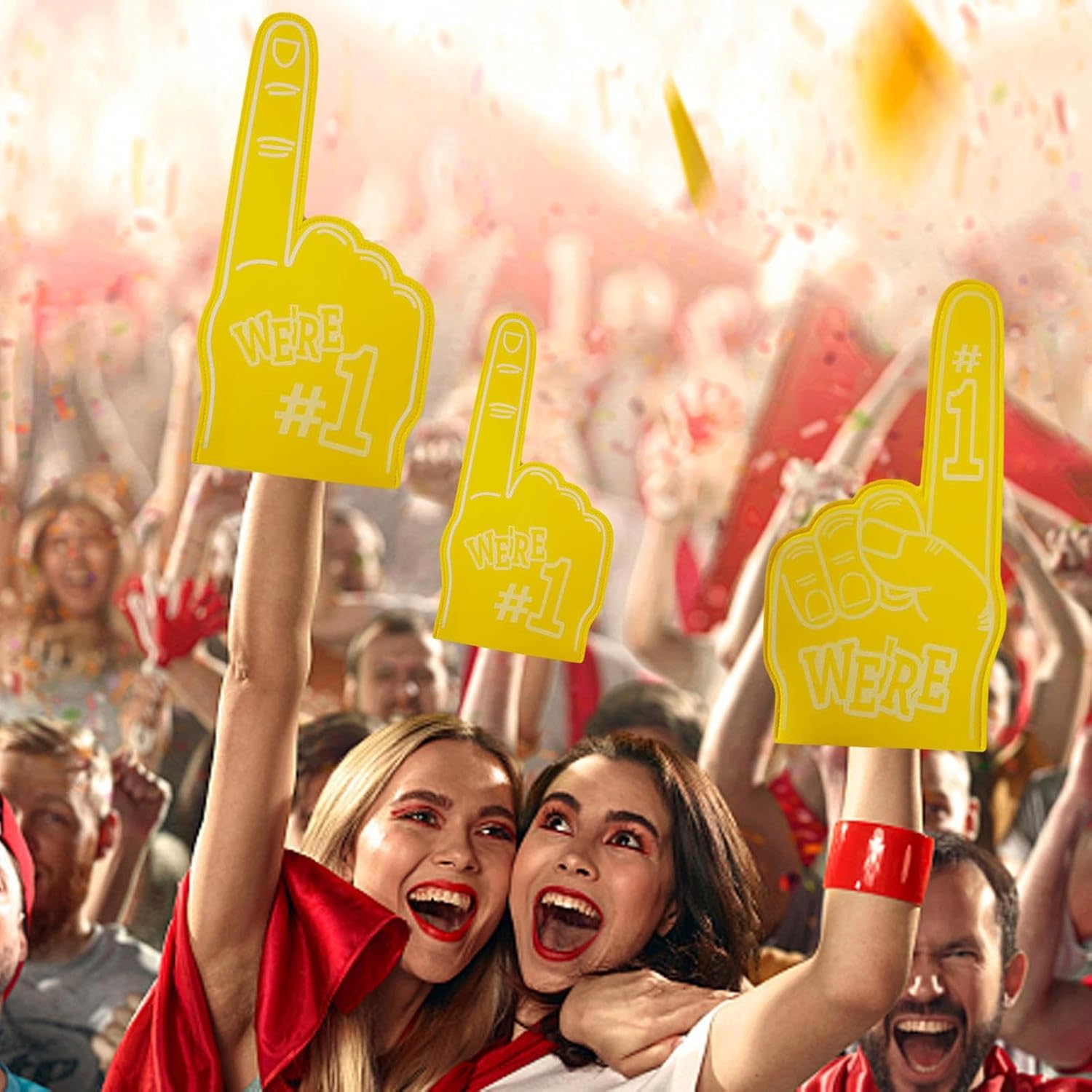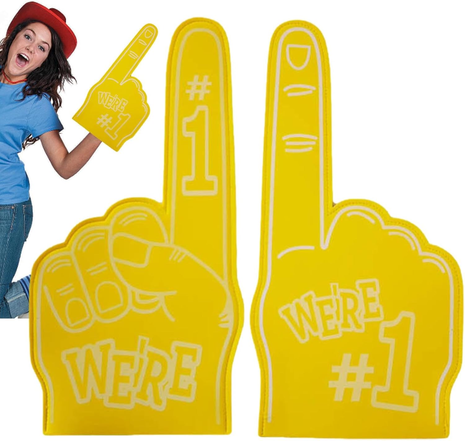 Looking for a fun and exciting way to show your support for your favorite athlete team? Look no further than these giant foam fingers! Measuring 18 inches long and designed in the shape of a u-no number, these foam hands are the perfect accessory for sports games, cheerleading competitions and school events. Perfect for sports games, motivational gatherings, wheel parties and more, these giant foam fingers are the ultimate accessory for any cheerleading sports enthusiast. So why wait? Grab your set today and show your support like never before! Cheer on your team with our durable and inspiring Sport Foam Finger! Measuring like a giant foam finger, it is large enough to make an impact on any game. Get in the game with our Sport Foam Finger! Specification: Product Name: Giant Foam Finger : EVA Dimensions: approximately 23 x 46 cm/9 x 18 inches. Packing list: Giant Foam Finger * 1 Note: Due to different lighting and screen settings, the colours of the item may vary slightly from the pictures. Due to the difference in manual measurement, please allow 1-2cm size difference.
