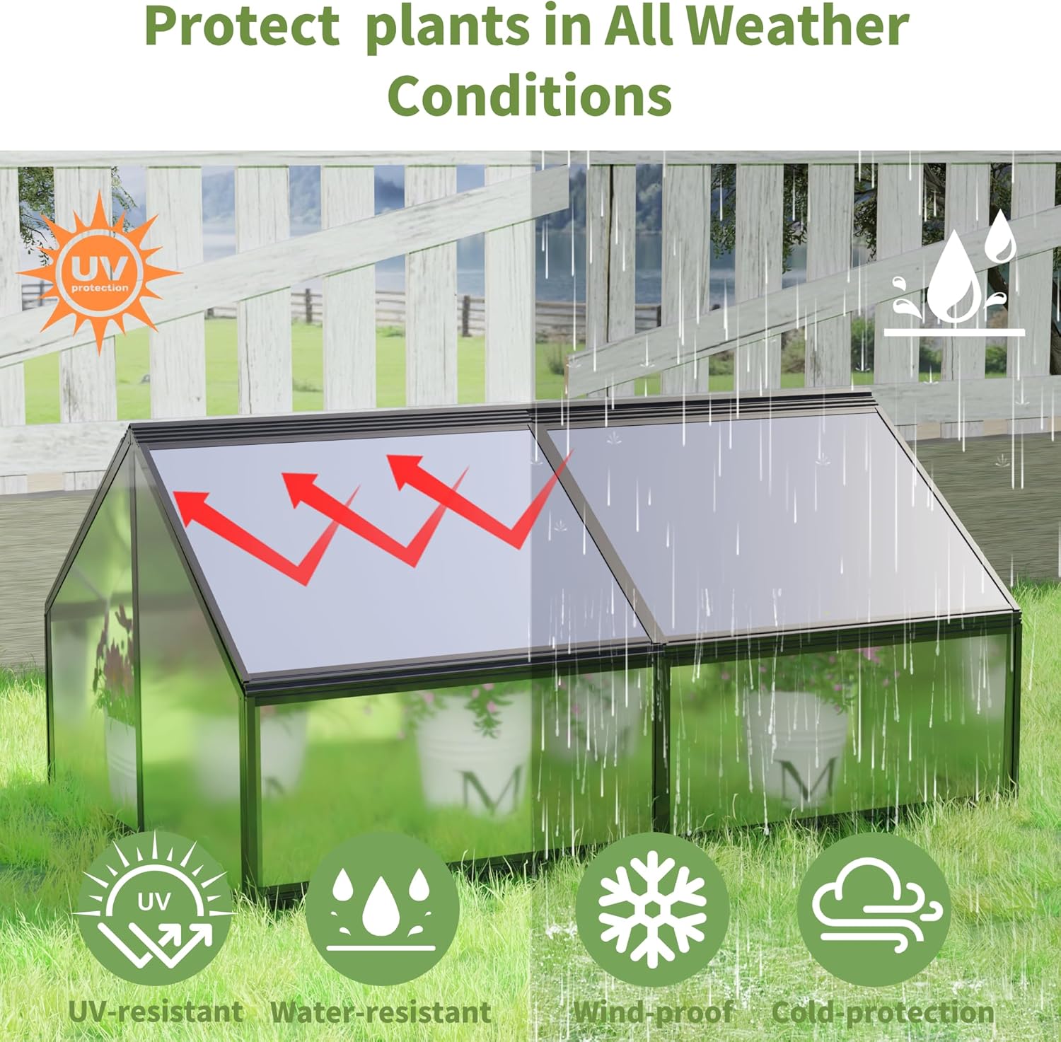 Transform your gardening experience with this innovative greenhouse and raised flower bed combination from ZENITHLIVING. Measuring 68.7" long, 45" wide, and 51.5" high, this dual-purpose garden solution maximizes your growing space. The greenhouse section features durable polycarbonate panels that create an optimal growing environment, capable of maintaining temperatures 40-50°F higher than outside - perfect for extending your growing season and protecting delicate seedlings. The sturdy galvanized steel construction ensures lasting durability, while the raised planter box design offers convenient planting height and improved drainage. This practical garden addition is ideal for growing vegetables, starting seeds, and nurturing plants throughout the seasons. The generous dimensions provide ample space for multiple plants, while the integrated design helps protect your garden from weather fluctuations and common garden pests. Assembly required, with the unit shipping in two manageable packages for convenient handling.