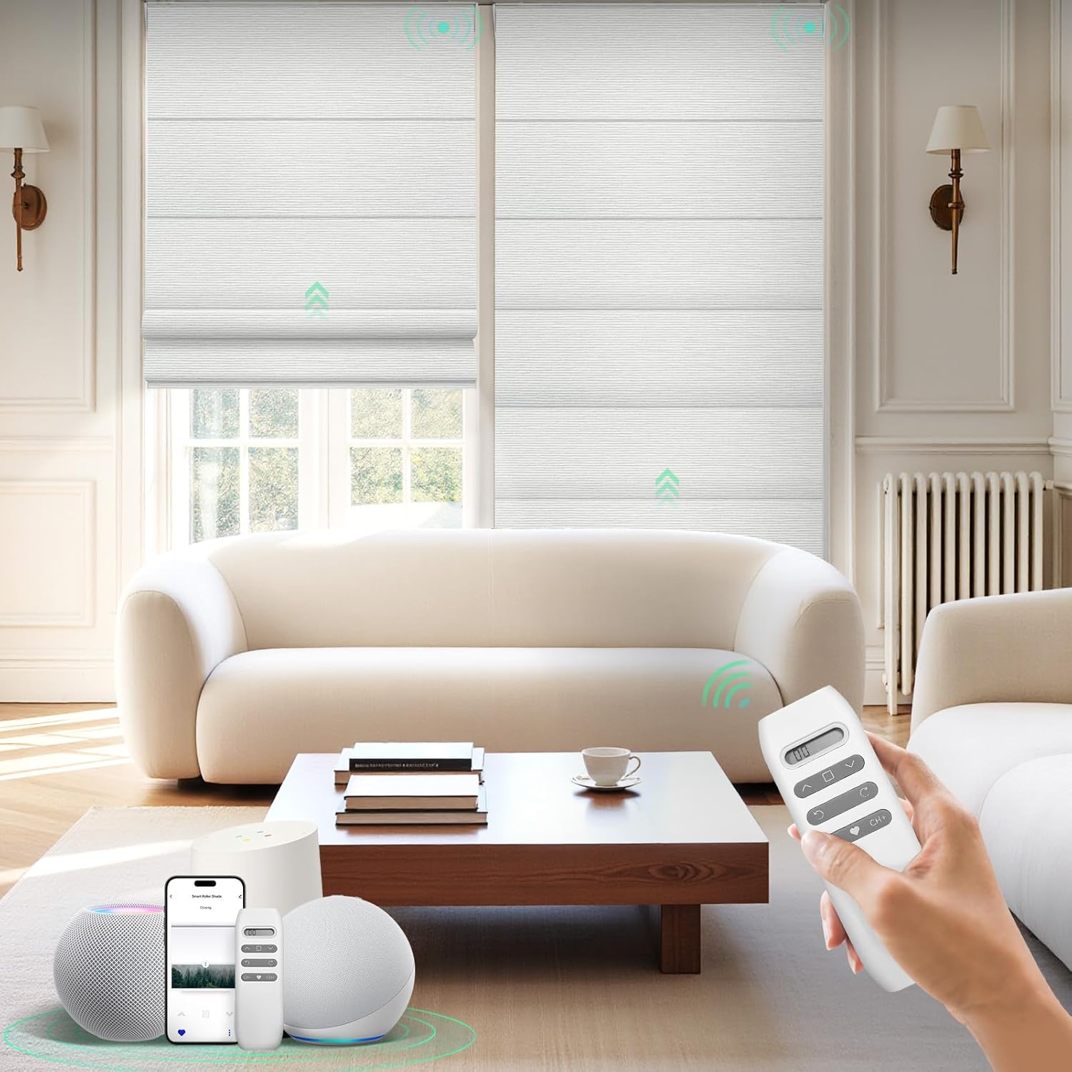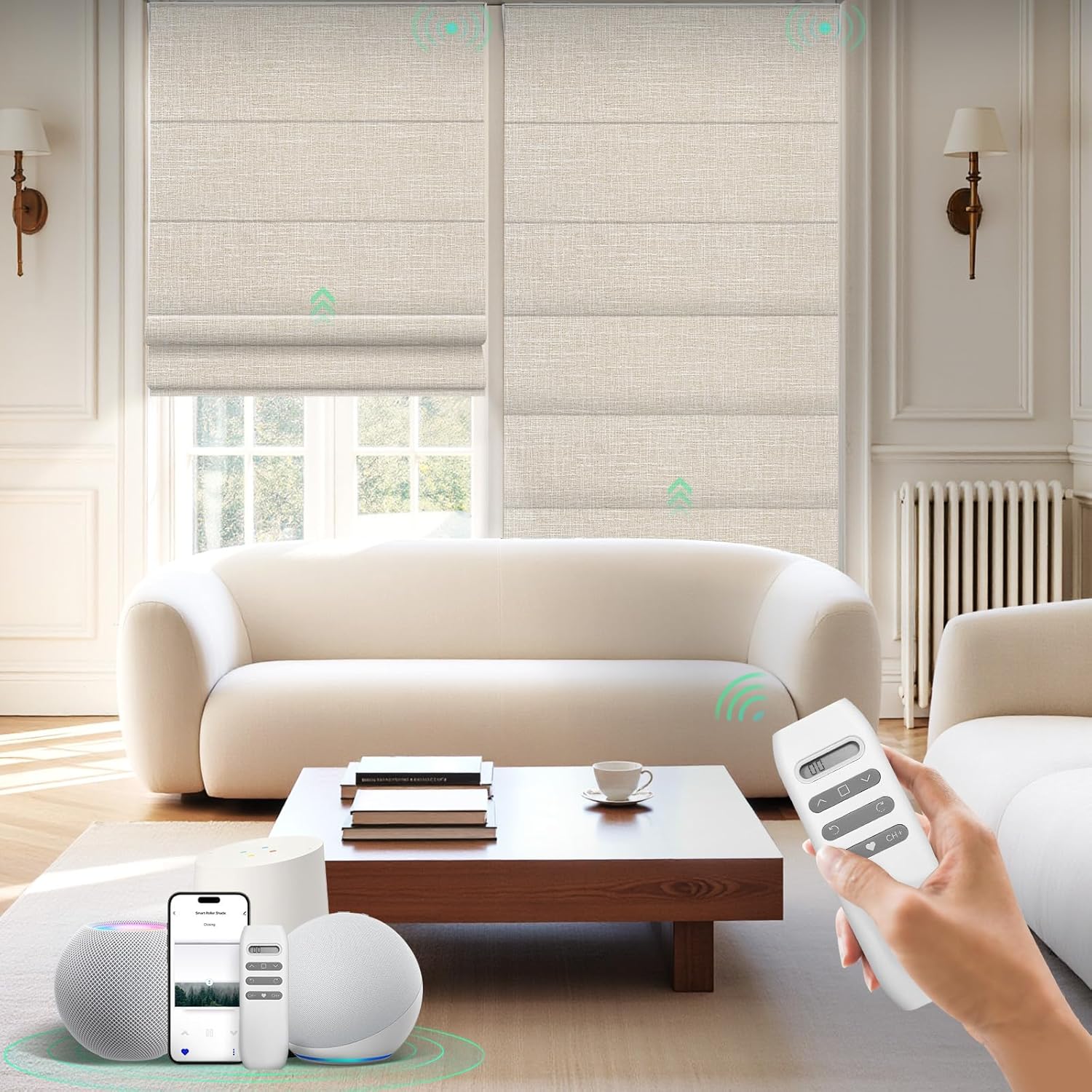 HeyBlinds Motorized Roman Shades with Remote, Smart Control, Blackout Automatic Blinds for Home and Office Windows, Compatible with Alexa, Google and Homekit, Custom Size (Soft-Black Bear BO)