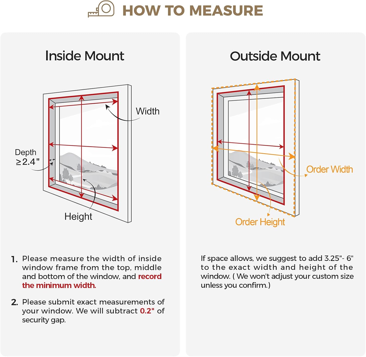 | Mounting Type | Inside Mount, Outside Mount |