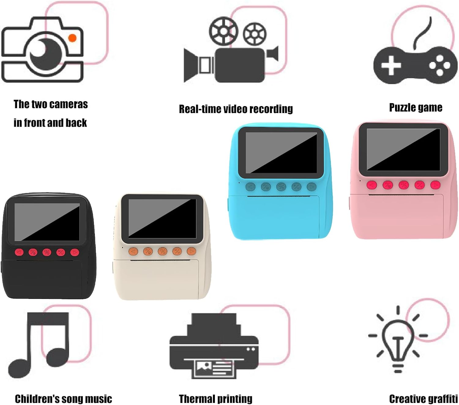Instantly Print Camera For Kids With 32GB Card Coloring Pen 1080P Retro Design For Ages 3-12 Durability& Safe MaterialsFeatures:The 1MP camera with instantly photo printing and a 3inch clear screen, featuring a builts in 32GB memory card for creative captures.This kid friendly instantly print camera offer multiple durability ABS construction, and a 1300mAh battery for hours of continuous and printing fun.Design for ages 3 12, this lightweight digital camera with colorful grips encourages artistic expression through photography and instantly photo sharing for birthdays, family outings, or creative playdates, the instantly print feature lets kids preserve memories physically while exploring their environment.Complete with colored markers and printing paper, this retro styles camera sparks imagination while developing photography skills in users through hands on Specifications Component:ABSSize:Approx.115x102x52mm/4.53x4.01x2.05inch4Option ColorScreen:3inchBuilts in Battery Capacity:1300mAhResolution:1080p 1Million PixelPackage Includes:1pc Instantly Print Camera3Roll Paper1pc USB Cable1pc Lanyard6pcs Color Pen1pc 32G CardNote:Please allow 1-10mm errors due to manual measurement. Due to the differences between different monitors, the picture may not reflect the actual item color.