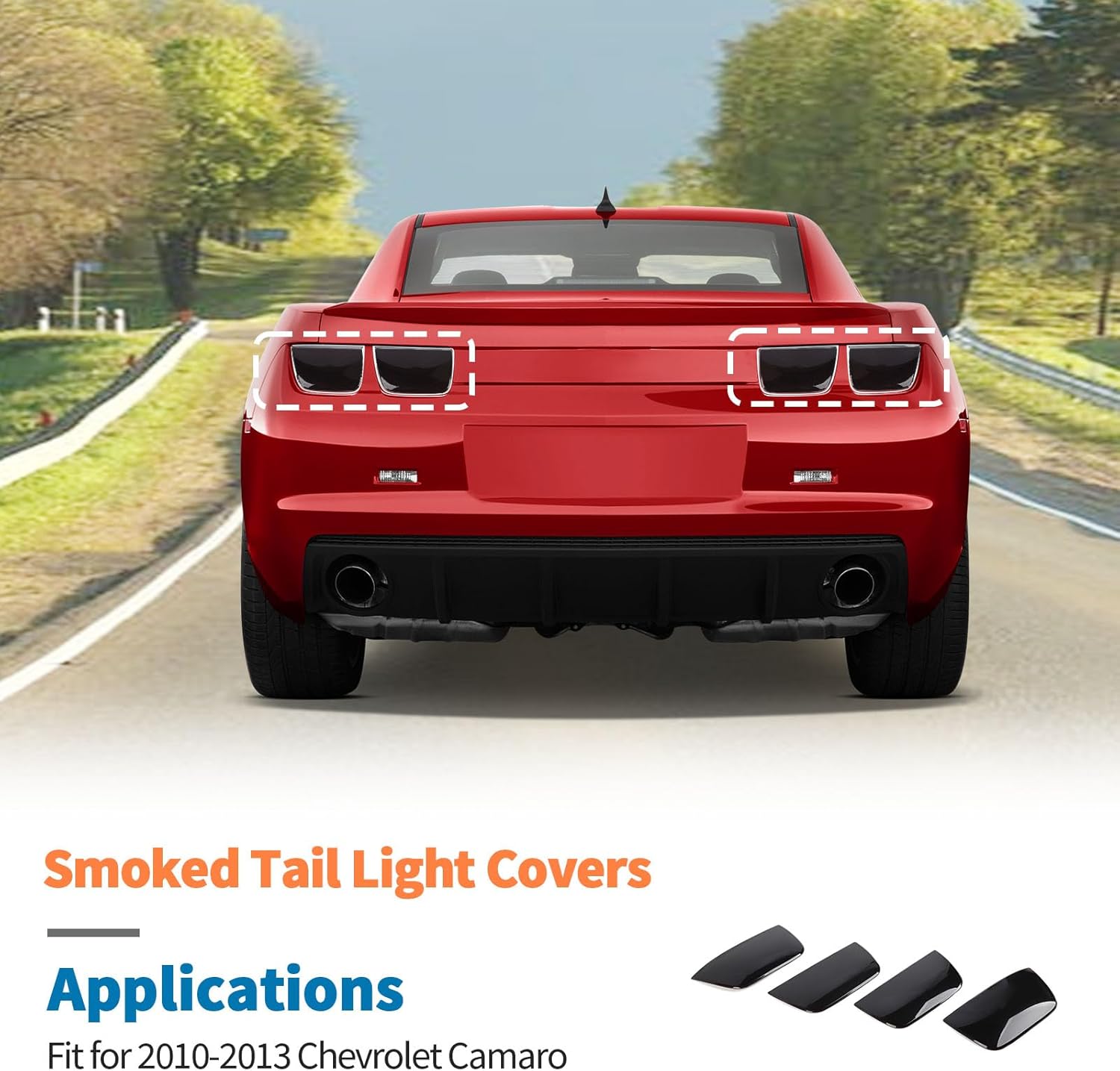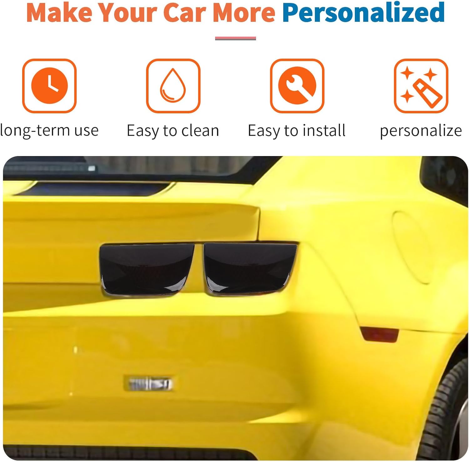 Welcome to JeCar JeCar Specializes in Designing Innovative, Personalized, and Cool Car Accessories. Provide Customers with Convenient Car Tuning Products and Solutions. From Interior to Exterior, JeCar Offers a Full Range of Automotive Attachment Accessories. Help Car Owners Enjoy the Fun of Redecorating Their Cars. Item Description: JeCar Smoked Tail Light Cover Trim Guards for 2010 2011 2012 2013 Chevy Camaro Condition: 100% Brand New Material: ABS Color: Smoked Features - Personalized custom design to create a unique tail light look for your Camaro; - Adding new beauty to your Camaro; - Cover scratches or wear, protect your Camaro tail light covers - High-quality material, durable, with good durability, and weather resistance, brings long-lasting protection for your Camaro; - Easy to install, no specialized tools required. Installation Tips: * Please clean the covered area thoroughly; keep it dry without dust; * Heat the adhesive tape with a hair dryer or lighter; * Paste the accessories in the corresponding position and press them with your hand to make them more solid. Package Included: - 4pcs Smoked Tail Light Covers