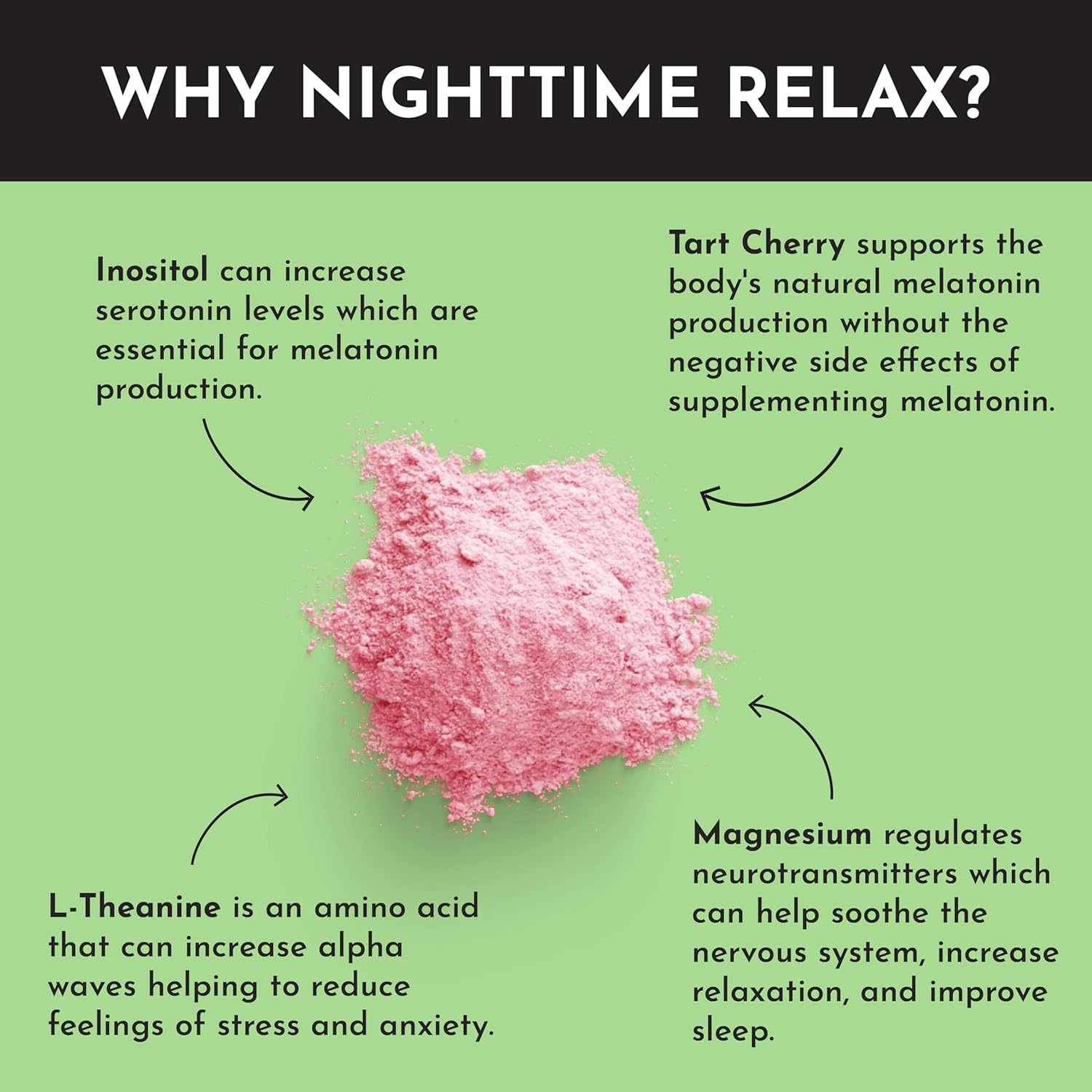 | Special Ingredients | L-theanine, inositol, magnesium bisglycinate, organic strawberry, tart cherry extract |