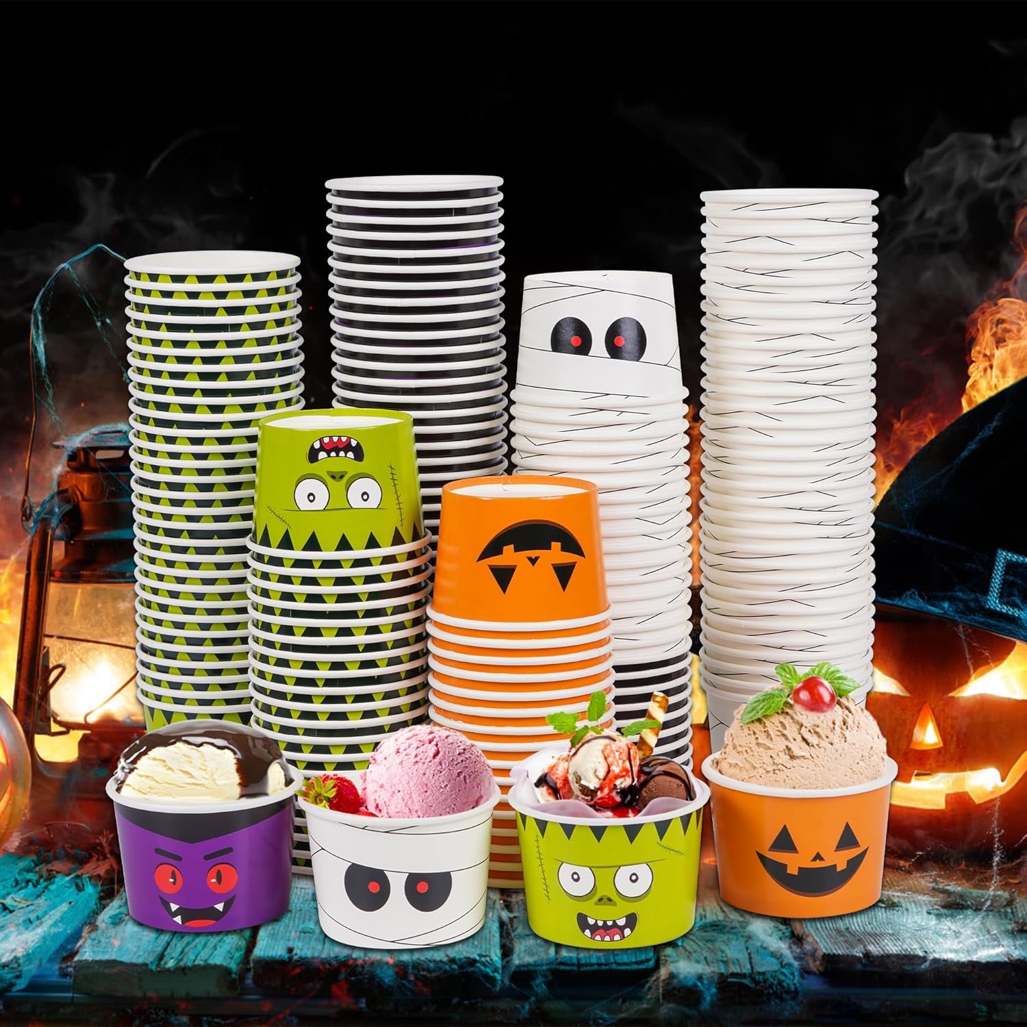 Package include: you will get 200 pieces of Halloween theme ice cream bowls , they are available in 4 different designs, 50 pieces for each pattern, colorful and beautiful, sufficient quantity can meet your daily use or replacement demands, and you can also share them with your family Halloween theme cups: our cups are designed in 4 styles,just like pumpkin color with black facial,demonic expression,monster face and banded face,that are sure to impress your guests,nice patterns and enough quantity to satisfy your Halloween party needs convenient for your many uses Capacity and Size: each ice cream cup holds approximately 8 oz of food, with a top spout measuring about 3.54 inches/ 9 cm, a bottom spout diameter of approx. 2.95 inches/ 7.5 cm, and a height of approximately 2.44 inches/ 6.2 cm, making it easy to serve ice cream, and distribute a variety of desserts and snacks to guests during the Halloween party Disposable and Convenient: these paper soup bowls are designed for disposable use; Whether for home use or meal delivery service, they can be applied easily and require no cleaning, which saves cleaning time and gives you more time to spend with family and friends, ideal for summer, Hawaiian, pool, and fruit themed parties and other festive occasions Widely applications:in addition to serving ice cream, milkshakes, and other foods, these paper ice cream cups can also be applied to serve other dishes such as macaroni, oatmeal, soup, snacks, cupcakes, cakes, popcorn, fruit, candies, biscuits, french fries or whatever you want to make your food look more delicious and sophisticated