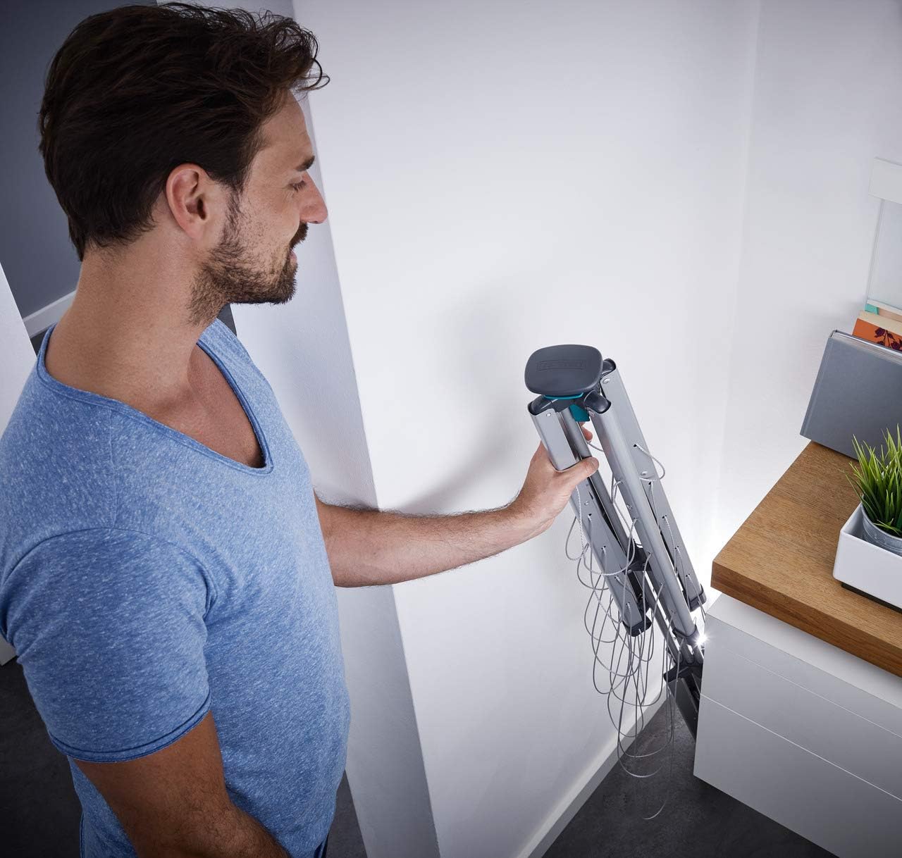Leifheit Lino Pop-Up 140 rotary washing line - quick-drying and space-saving clotheslineThis compact and portable washing line is guaranteed to save space and speed up drying time. The line features a convenient one-hand operation system, allowing the line to pop open and closed as needed. The wide-footed base and balanced arms ensure the line stays upright at all times during use. The line is designed to save space, working well on balconies, patios, in apartments, bathrooms and even on camping trips. It features a protective cover to keep it safe during transportation. The clothesline is spacious with a maximum hanging space of 14 m, allowing you to hang an entire wash for airing at the same time.Supplied by Leifheit in Germany. For over 60 years, Leifheit has been one of Europe's leading suppliers of cleaning, laundry care and kitchen products. All their innovations are easy to use, work reliably, are made from enhanced materials for durability and offer different practical performances. With their enhanced quality, they make life in the home easier and more convenient, giving you more time for the things you love.The product properties in detail:Portable rotary airerSuitable for indoor and outdoor useOne-hand opening/closing systemMax line length 14 mOutermost line height 95 cmProtective cover includedWeight - 3.6 kgDimensions - 12 cm x 9 cm x 147 cm