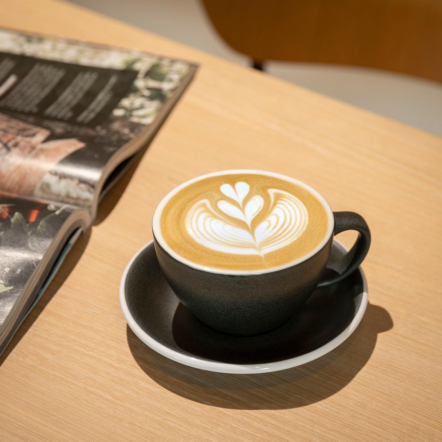 Loveramics Set of 1 x 300ml Latte Art Cup and Saucer (Anthracite) + Glass Travel Mug (Clear)