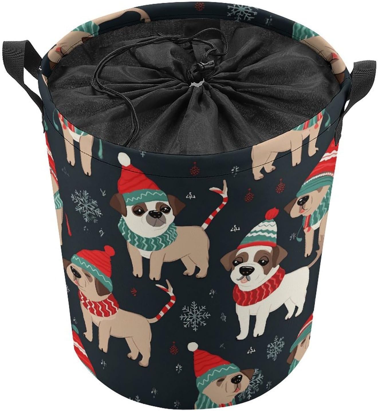 This large collapsible laundry basket is here to transform your home organization. Made from smooth Oxford cloth with a water-resistant coating, it handles damp towels and soiled clothes without absorbing moisture or retaining odors. The drawstring closure adds an extra layer of protection, keeping your items clean and dust-free whether it’s placed in your walk-in closet or a hotel bathroom. When you’re done, it folds down to a slim profile that fits easily in a storage bin or under the bed, making it perfect for small apartments, campervans, and vacation rentals.This cute laundry hamper blends functionality with a playful, stylish design that complements any decor. Measuring 13.8 inches in diameter and 17.3 inches in height, it has plenty of room for a family’s daily laundry, while its lightweight build means you can carry it with one hand thanks to the sturdy side handles. Whether you’re tossing in workout gear after the gym, stowing away extra blankets for guests, or packing it for a weekend trip, it adapts to your needs effortlessly.For anyone who loves to explore, this travel laundry bag is a game-changer. No more mixing dirty clothes with clean ones in your suitcase—simply toss your used garments into this bag, cinch the drawstring, and keep your luggage organized. Its foldable design means it takes up virtually no space when empty, so you can tuck it into a backpack or carry-on without adding bulk.Whether you’re staying in a hotel, camping in a campervan, or settling into a vacation rental, this bag keeps your belongings neat and tidy, making every trip stress-free.