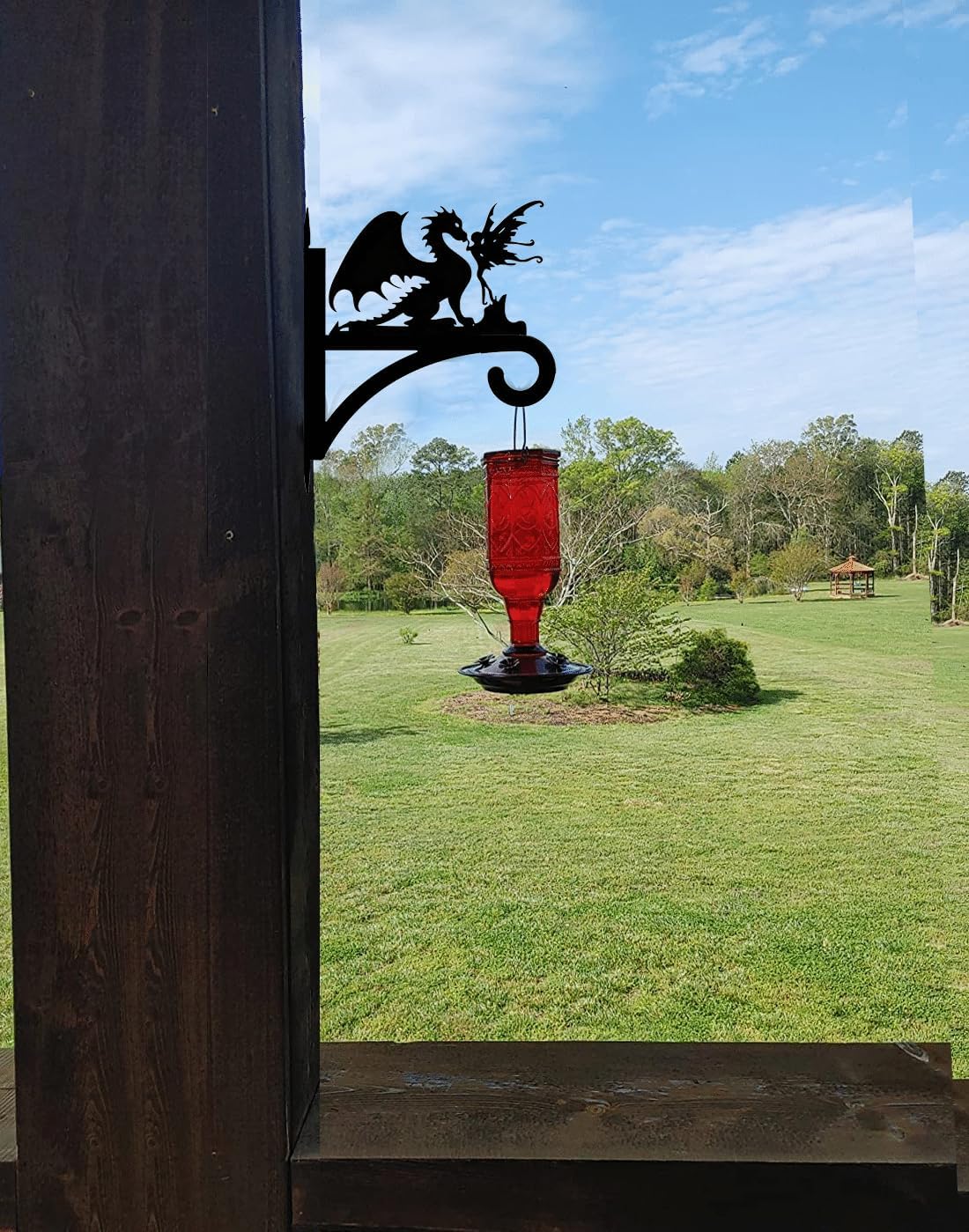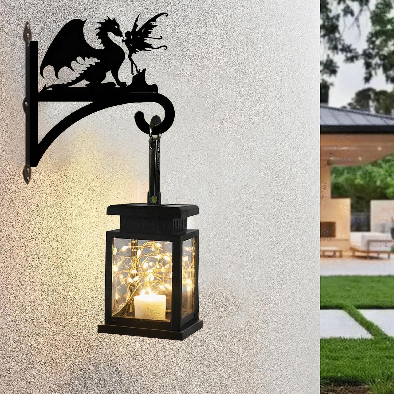 CatchDragon Hanging Basket Hangers Outdoor, Decorative Black Plant Hanger Hook with Dragon and Fairy Pattern for Hanging Planters, Lanterns, Wind Chimes, or Bird Feeders Specifications: material: metal plant hanger dimension: 11.24"Lx14.27"H(28.8*36.5cm), thickness 1.7inch. package: it includes 2pcs plant hanger wall mount and screw hardwares. Features: Unique Dragon&Fairy Design Our plant hanging brackets features intricate silhouette of a winged fairy with a dragon. The bracket for hanging plant adds a whimsical, magical accent that stands out in any garden, patio, or entryway. Durable&Sturdy: Crafted from durable steel, each hanging planter bracket is built to hold a variety of hanging items such as flower baskets, bird feeders, lanterns, or wind chimes. Easy To Install: Easy to install with included mounting hardware, these decorative plant hanger hooks outdoor combine practicality with enchanting style, making them an ideal addition to any home décor.