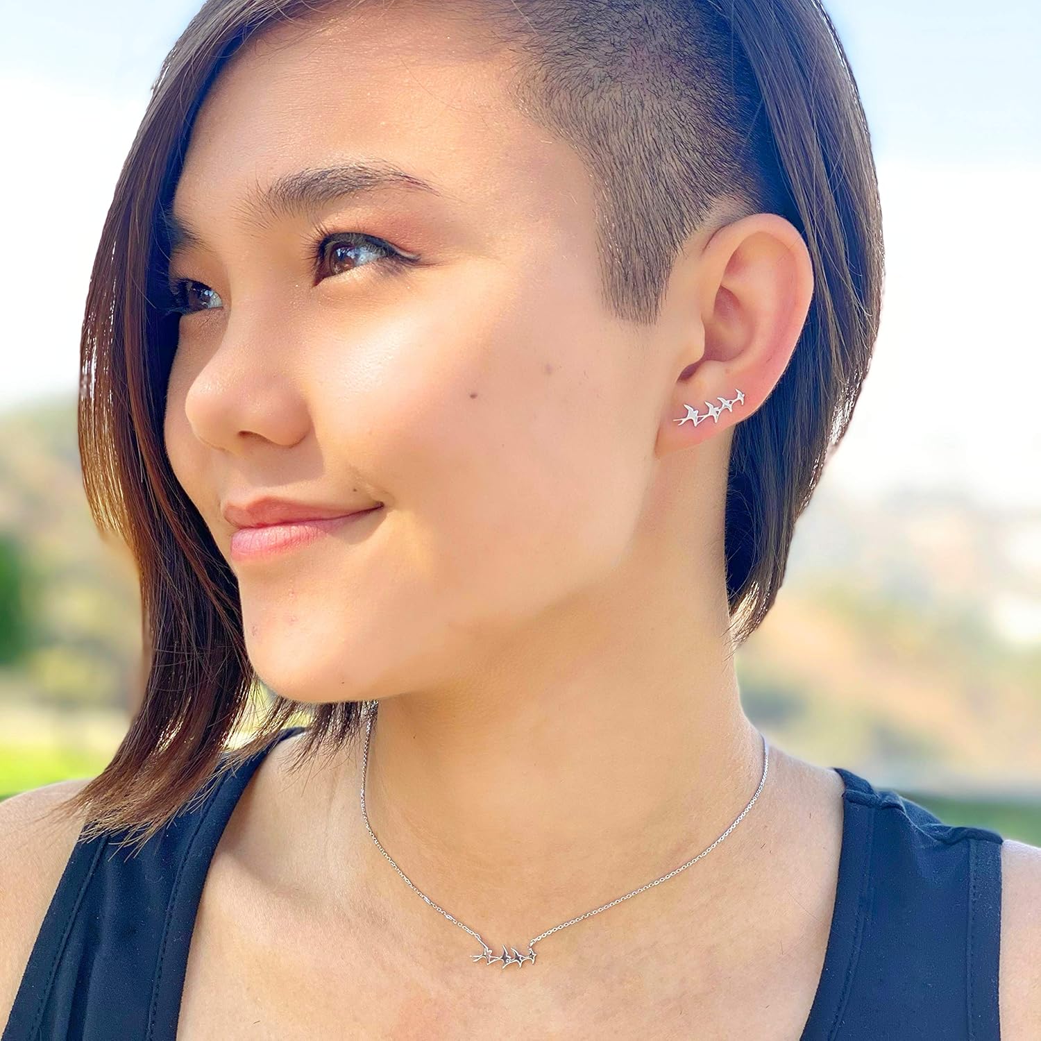 I am loving these mismatched earrings for that Asymmetric Look ! Pair of mismatched earrings has a flock of birds on one side... and just 1 on the other side. Truly makes the them look like they are flying through from ear to ear.
