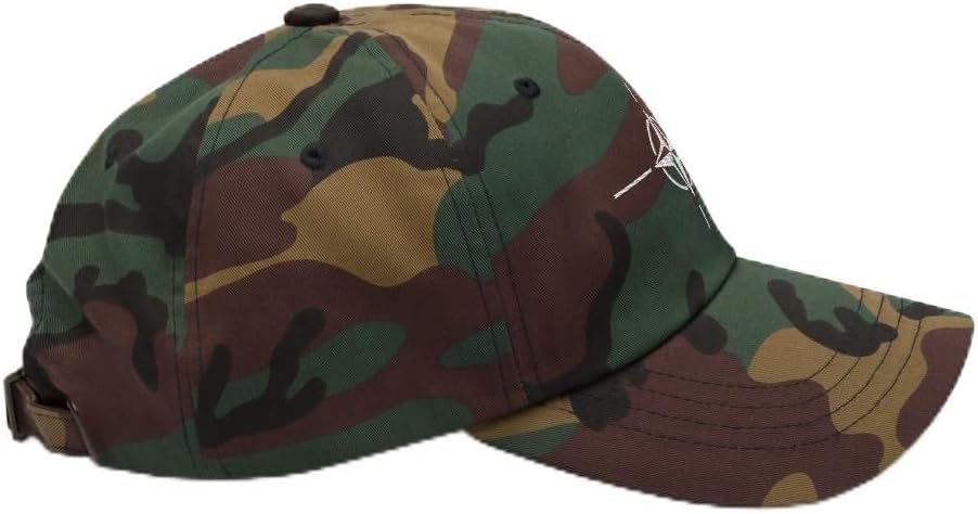 Dad hats aren't just for dads. This one's got a low profile with an adjustable strap and curved visor. 100% chino cotton twill Green Camo color is 35% chino cotton twill, 65% polyester Unstructured, 6-panel, low-profile 6 embroidered eyelets 3 ⅛” (7.6 cm) crown Adjustable strap with antique buckle This product is made especially for you as soon as you place an order, which is why it takes us a bit longer to deliver it to you. Making products on demand instead of in bulk helps reduce overproduction, so thank you for making thoughtful purchasing decisions!