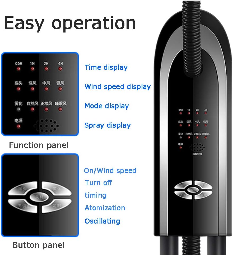 Hot and humid weather put a damper on your day, and indoor air conditioning all day and night can affect your health. The perfection solution is an outdoor fan that is adjustable, oscillates, and has 3 speed settings. The misting kit will keep you cool and refreshed during hot summer months and uncomfortable nights. Specifications Name:Misting Fan Voltage: 220 V / 110 V Product Power: 75 W Net cover diameter : 430 mm / 17 inch Adjustable Height: 1200 mm / 47 inch Water tank size: diameter-150 mm / 6 inch, height-310 mm / 12 inch Power cord length: 1700mm / 5.6ft Water Tank: 3.2 L Remote Control : Yes Timing: 7.5 hour Spray Distance: 2-6 meters Maximum Fog Amount: 300 ml/h Cooling Range: 3-8 °C (Celsius) Motor: Copper core motor Speed: 3 speed adjustment Area Coverage: 10-25 square meters Oscillation: left-right Please note 1. The product is manually measured and may have a slight error of 1-3 cm. 2. Due to shooting angles and lighting problems, there may be inconsistencies. Welcome to our shop, if you have any questions, please contact us, we wish you have a happy shopping!
