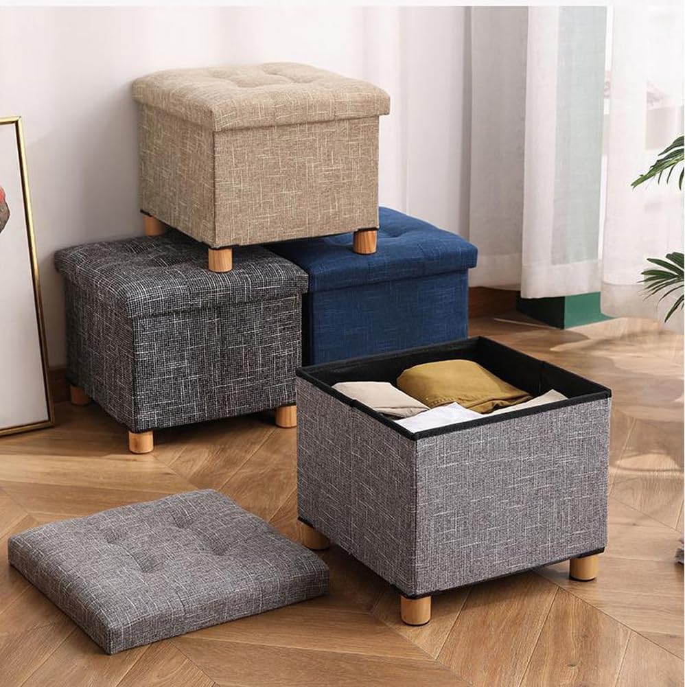 This good looking and so cute stool can match any furniture in your room. The simple design that makes your living rooms more nicer. -- Crafted from high-quality linen, this ottoman is both durable and comfortable. The storage ottoman bench is filled with high elastic sponge to relieve the fatigue of sitting for a long time -- Its padded cushion provides a soft and comfortable place to rest your feet after a long day. It also doubles as extra seating for guests, making it a versatile addition to your home -- This ottoman features a unique folding design that allows for a quick setup. When needed, it can be effortlessly folded flat for storage, providing a practical space-saving solution for your home -- Coffee Table Ottoman with tray for living room. The reversible cube storage Ottoman with tray is great. The function of the stool is not just storage, when ottoman flip top tray, the stool turns into a upholstered storage ottoman coffee table in seconds -- You can place it in your bedroom, living room, hallway or utility room to organize books, clothes, blankets, shoes, toys and many other sundries. Multi-purpose ottoman works great as footstool, bed stool, toy chest, coffee table, etc Package including: 1 x Ottoman