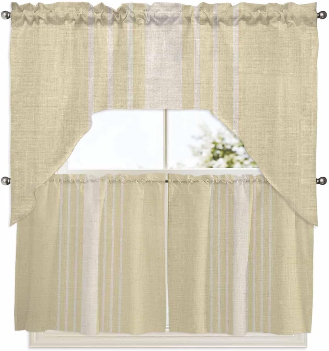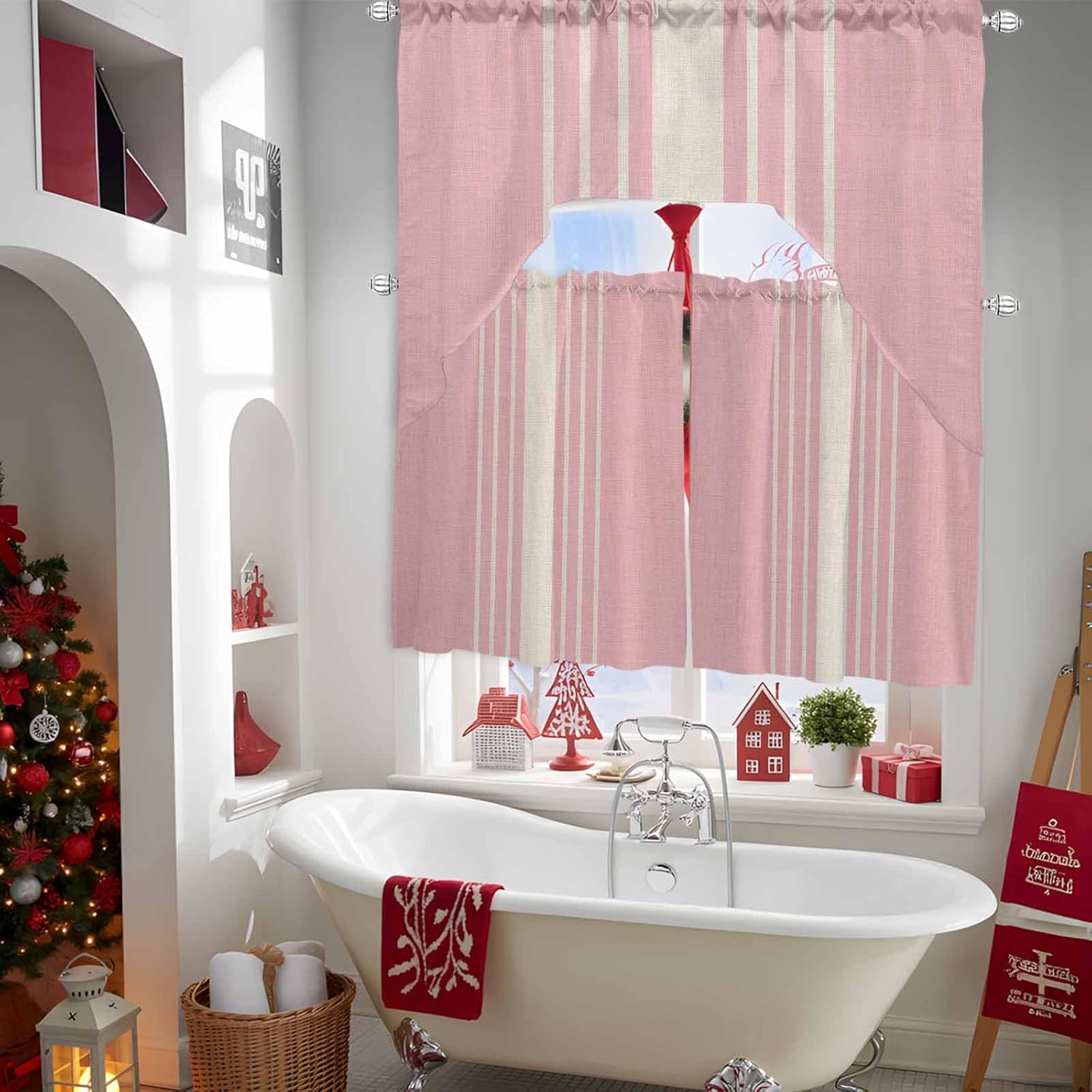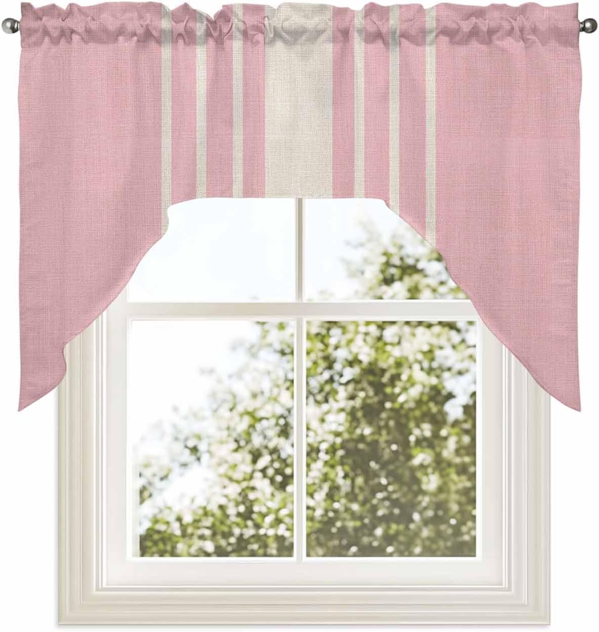 This swag window valance, a versatile addition to any space, combines practical design with aesthetic charm to enhance windows in unique ways.Stylish and Flexible Hem DesignThe swag curtain for kitchen's hem features a gently curved, flowing shape that adds an elegant touch to window frames, creating a more polished look than straight-edged alternatives.The designs also offer flexibility, making the swag curtains for windows ideal for windows with special setups such as air conditioning units or protruding fixtures.The way the swag curtains for kitchen windows drapes allows them to fit around obstacles without looking awkward.Enhanced Breathability and VisibilityWhile ordinary valances, do offer some breathability, this swag curtain valance for window takes it a step further with the hem design.The loose, drooping curves of the hem and natural gaps, more noticeable, create extra channels for air to pass through.This results in better air circulation, preventing the space from feeling stuffy.In terms of visibility, the hem's layout is deliberate.So, our swag valance for living room keeps a more balanced part of the outside view compared to regular short valance.The valance swag allows just the right amount of light to brighten the room and offers a clear yet soft look at the outdoors, achieving a more accurate balance between being enclosed and open.Beautiful DecorationIn a kitchen, this short curtain infuses the space with warmth and personality.The color, paired with subtle patterns, complements counter tops and cabinetry, tying the room's decor together.Every morning, as sunlight filters through, it casts gentle shadows that dance across the walls, creating a welcoming atmosphere.The swag curtain topper feels like a small, thoughtful detail that makes daily routines more pleasant.