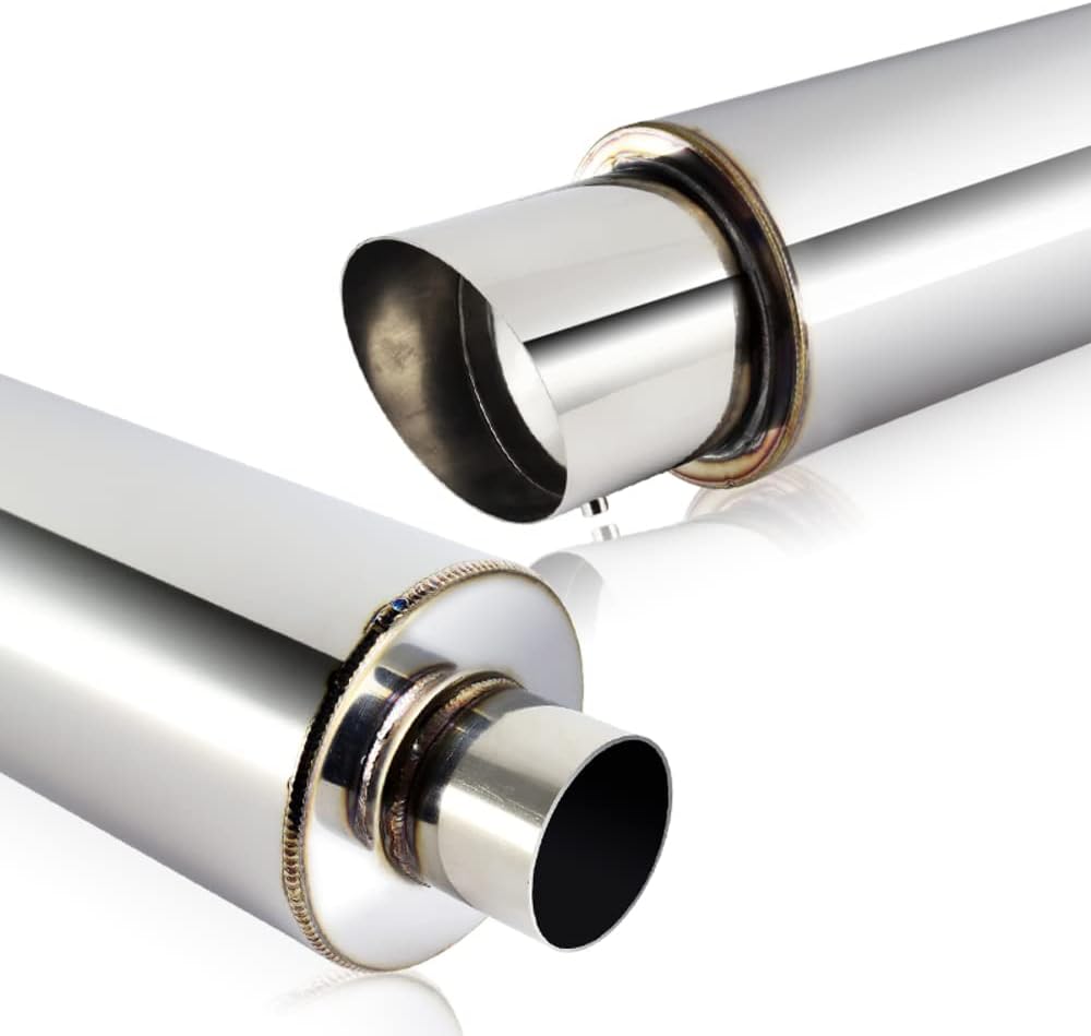 FITMENT:*** Please check this size of the muffler ( under the specs section ) and compare the size to the installation location for fitment ***- Due to installation to weld-on the muffler, an extended piping might be required and charged my your mechanic. PACKAGE INCLUDES: 1 x Exhaust Muffler1 x Removable silencer pre-attachedThis product requires a professional welder, and does not come with installation instructionsFITMENT:*** Please check this size of the muffler ( under the specs section ) and compare the size to the installation location for fitment ***- Due to installation to weld-on the muffler, an extended piping might be required and charged my your mechanic. PACKAGE INCLUDES:1 x Exhaust Muffler1 x Removable silencer pre-attachedThis product requires a professional welder, and does not come with installation instructionsFEATURES: 100% Brand new, never been used or installedImproves the look and feel of your vehicleDepending on preference, you can remove the silencer to increase the loudnessThe muffler provides a deep and smooth toneMade From High Quality T-304 stainless steel Slant TipA great upgrade for your vehicle Specs:Tip diameter: 4"Tip length: 4"Inlet diameter: 3.0"Inlet length: 2.5"Body diameter: 5.0"Body length: 12"Total length: 19"