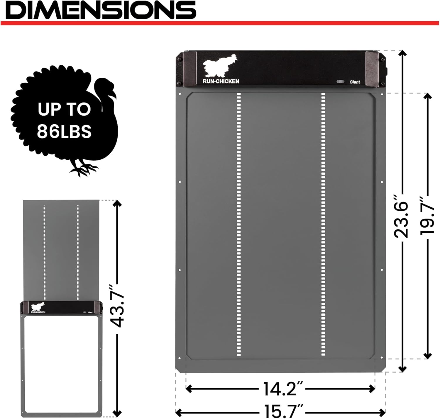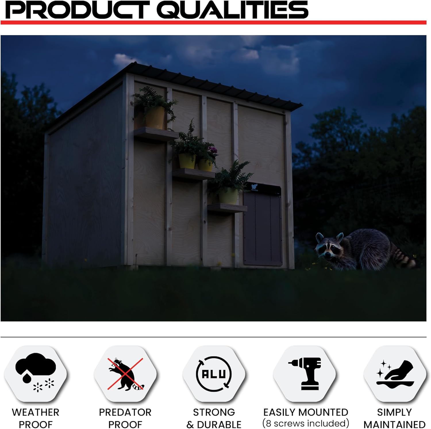 | Specific Uses For Product | Automatic Coop Door System, Duck and Turkey Coop Door, Large Poultry House Entry, Outdoor and Indoor - Poultry habitat |