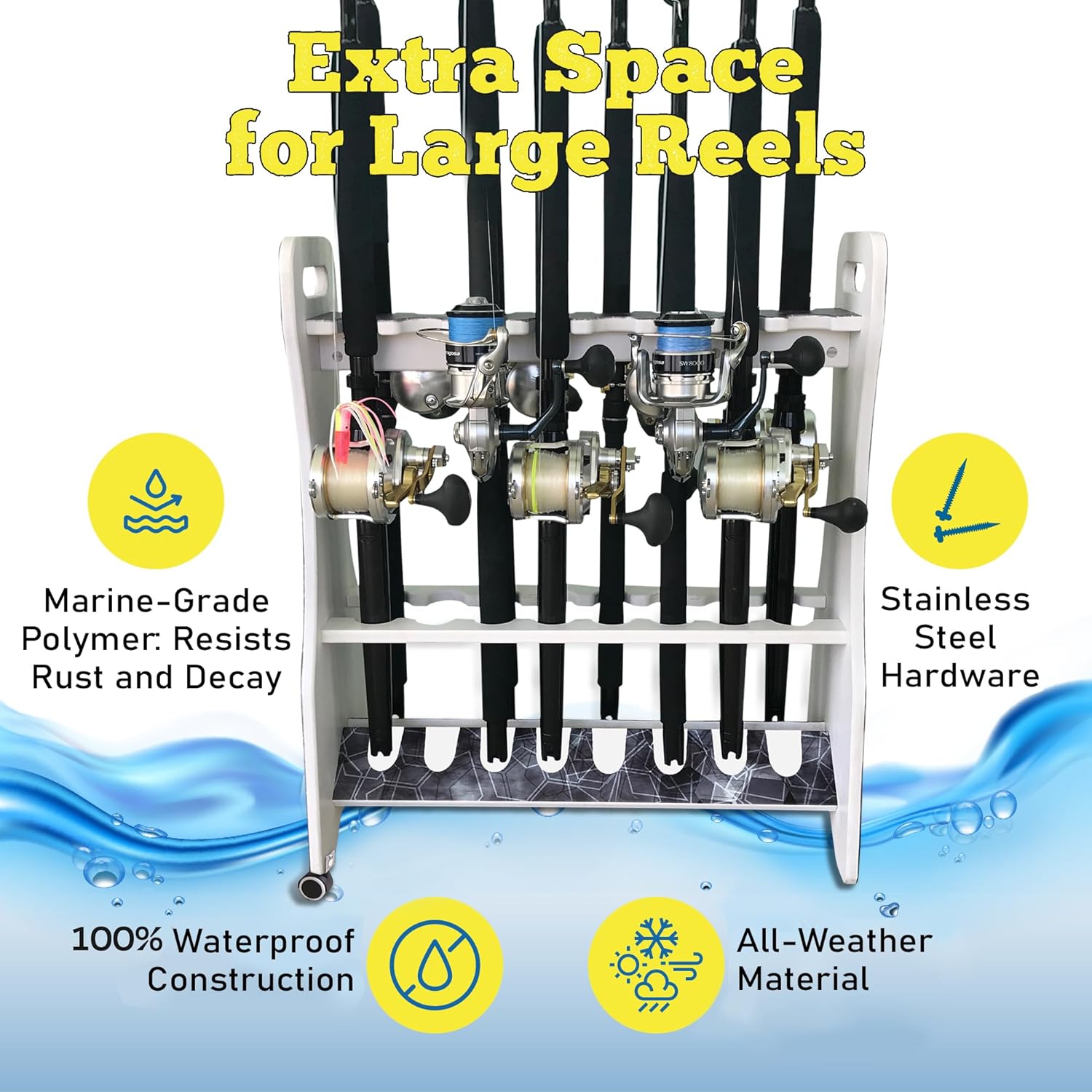 | Item Type Name | Rush Creek Creations Reel Salty Marine Grade Saltwater 16 Fishing Rod Rolling Storage Rack, Gray/White |