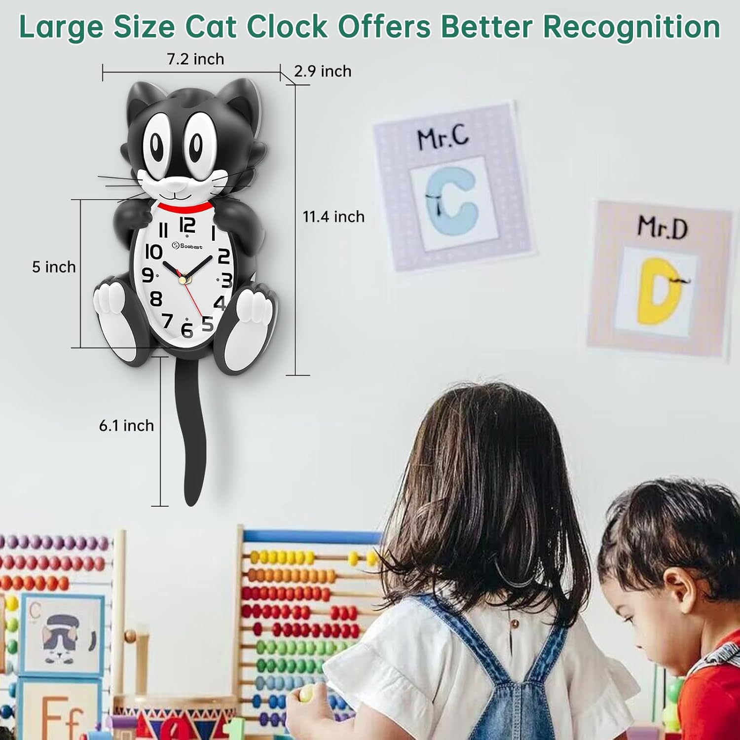 | Additional Features | Large 18 Inch 3D Cat Clock, Moving Eyes and Tail, Battery Operated, |