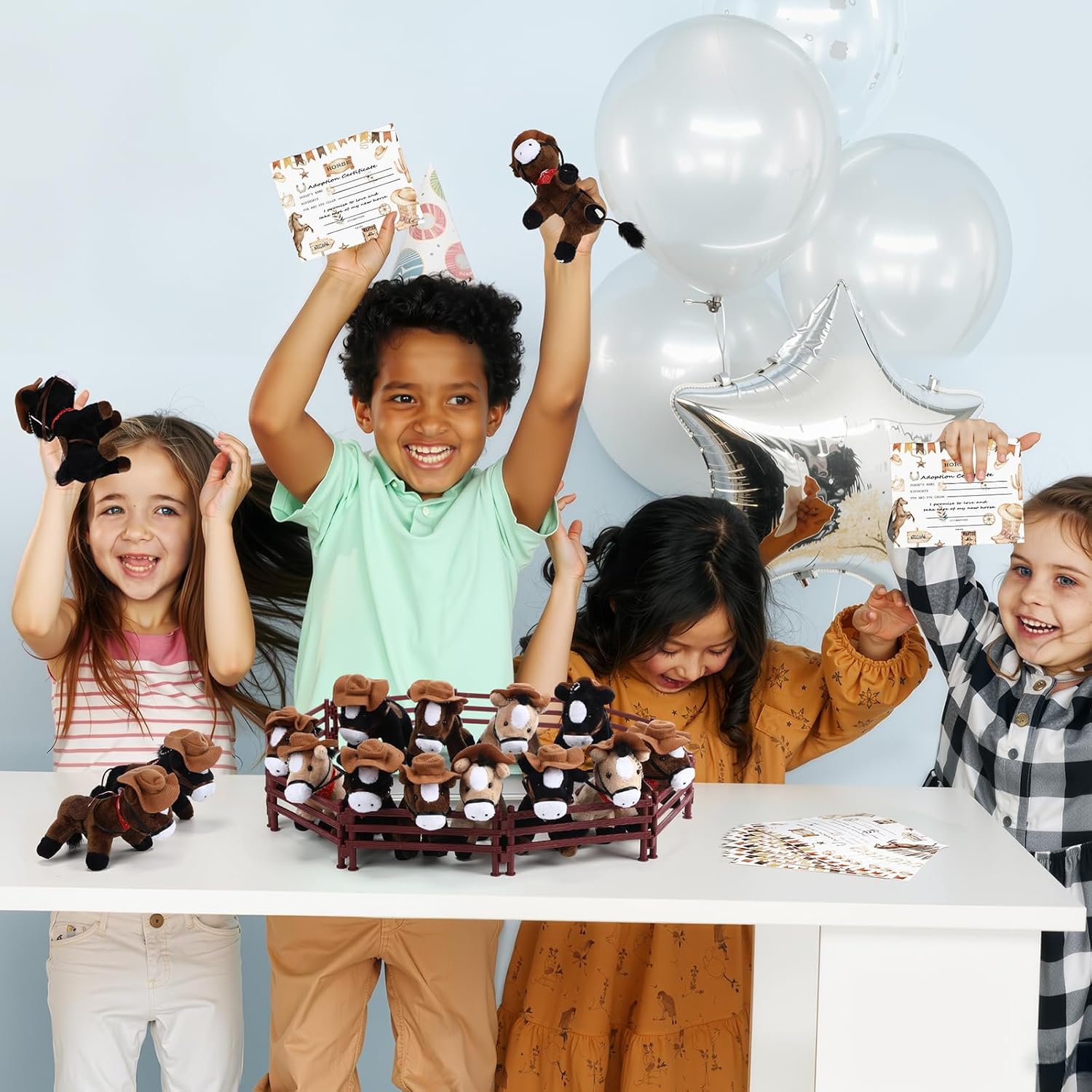 Features: Portable Plushies: With 12 plush horses in three colors, they're cute and portable. Measuring about 4 inches, they're easy to hold and carry around, making them ideal companions for imaginative play. Ideal for Various Occasions: Ideal for animal themed parties, birthdays and pet celebrations. Whether applied as centerpieces or in gift bags, they're sure to delight guests and enhance the party atmosphere. Specifications: Material: PP cotton plush Color: light brown, dark brown, black Size: as shown in the figure Package includes: 12 x mini horse stuffed animals 12 x Adoption certificates 12 x Adoption cards 10 x Fence pieces Notes: Manual measurement, please allow slight errors on size. The color may exist a slight difference due to different screen displays.