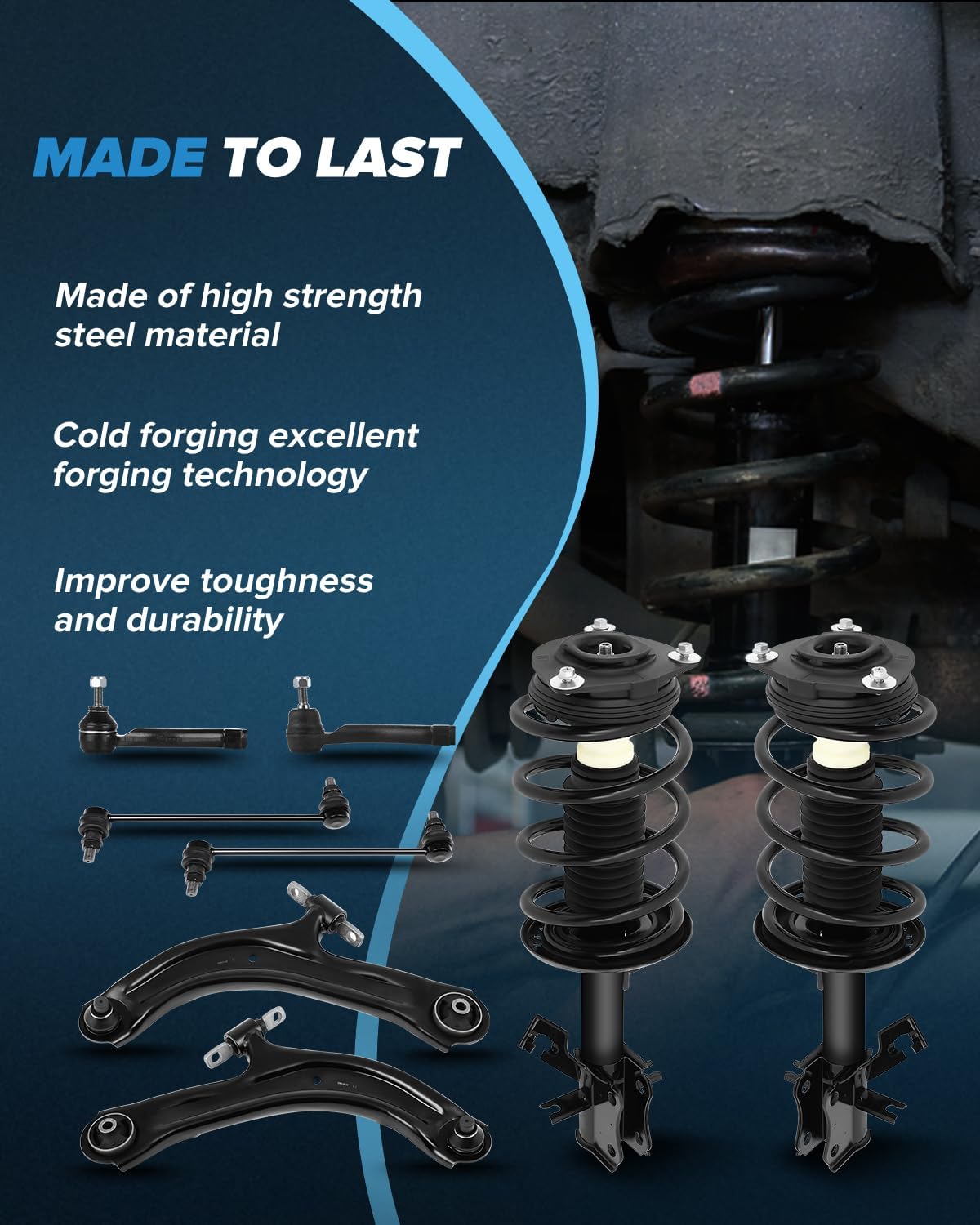 | Style Name | Front Strut Spring Assembly Control Arm and Ball Joint Assembly Stabilizer Bar Link Tie Rod End |