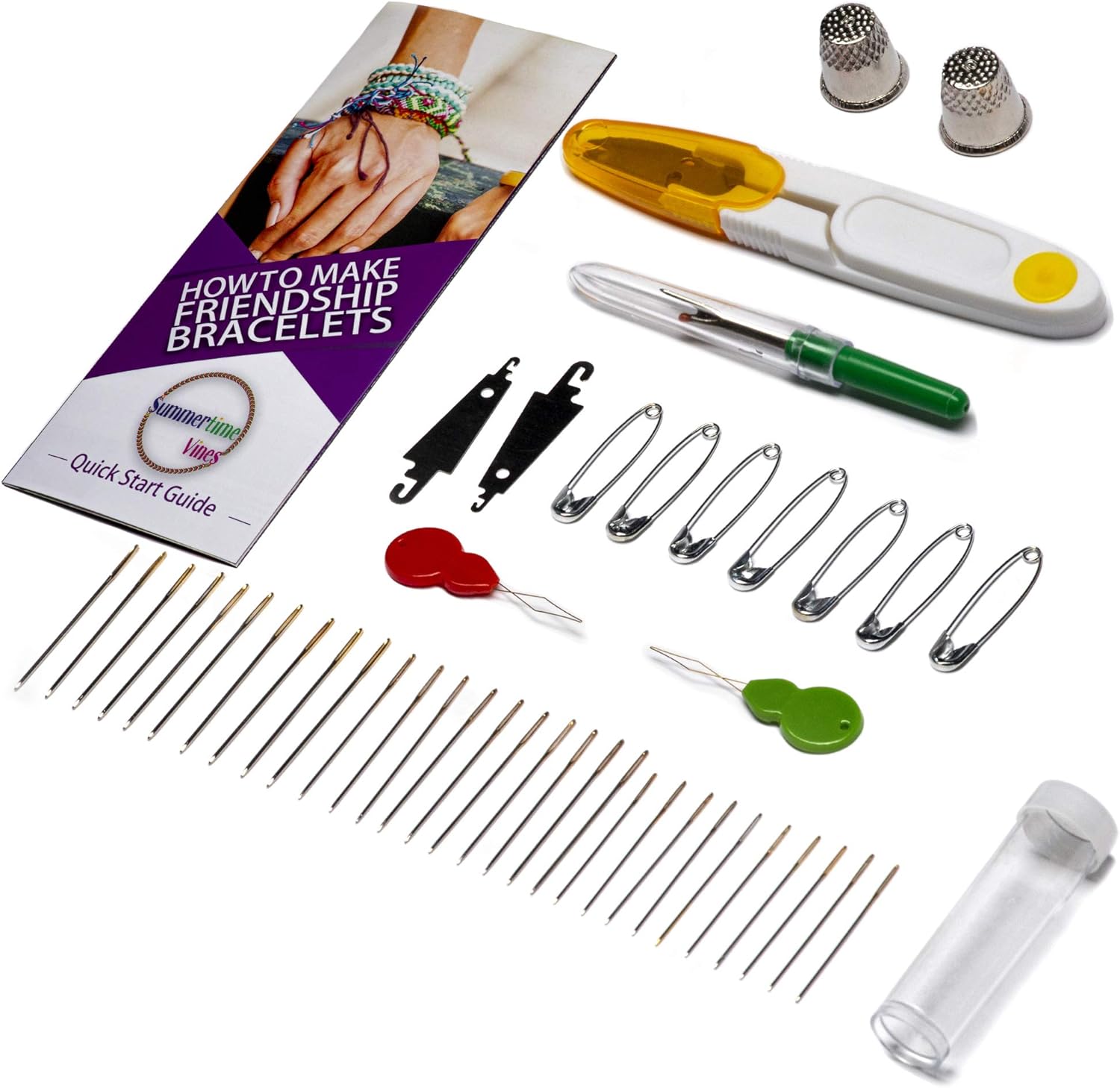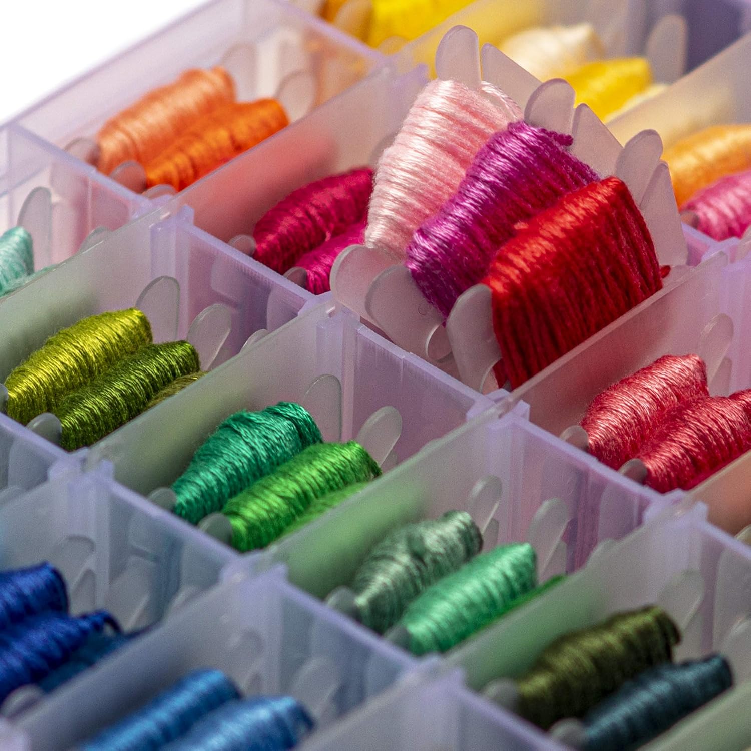 Embroidery Thread Kit for BeginnersThis Embroidery Kit is perfect for beginners and includes:96 different DMC colored string;an Embroidery Thread Organizer; and40 beginner tools with 30 needles, scissors and more🧵 : This is one of the BEST SEWING KITS for adults to get started with embroidery, cross-stitch and other sewing crafts. It includes 96 different bright colors that don't get tangled. Each color thread is over 26 feet long and made up of 6 strands that are pre-wound on durable plastic bobbins. Also, this kit includes 30 needles, scissors, thread remover, 2 thimbles and 7 safety pins. Everything is packed in a plastic organizer box that is great for traveling🧷: This EMBROIDERY STARTER KIT is used for multiple crafts besides embroidery, such as cross stitch, sewing, weaving, needle craft, hand knitting, creative string crafts, crocheting, tassels and others🎁: What an IDEAL GIFT for a beginner who wants to get into SEWING and EMBROIDERY. It is also perfect for someone just starting out doing embroidery designs or wants to learn sewing. Good item to start a sweatshirt embroidery business!